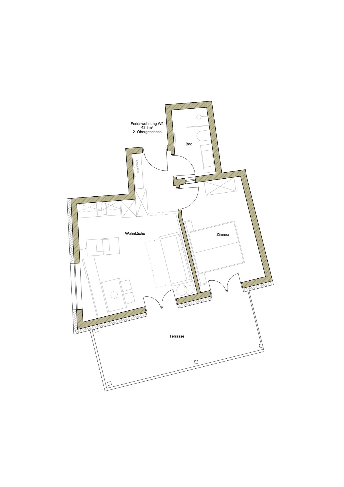 L’appartamento Kiefer misura 40m² ed è adatto a 2-4 persone. L'appartamento si trova al secondo piano e dispone di una camera da letto e di un divano letto per 2 persone nel soggiorno.