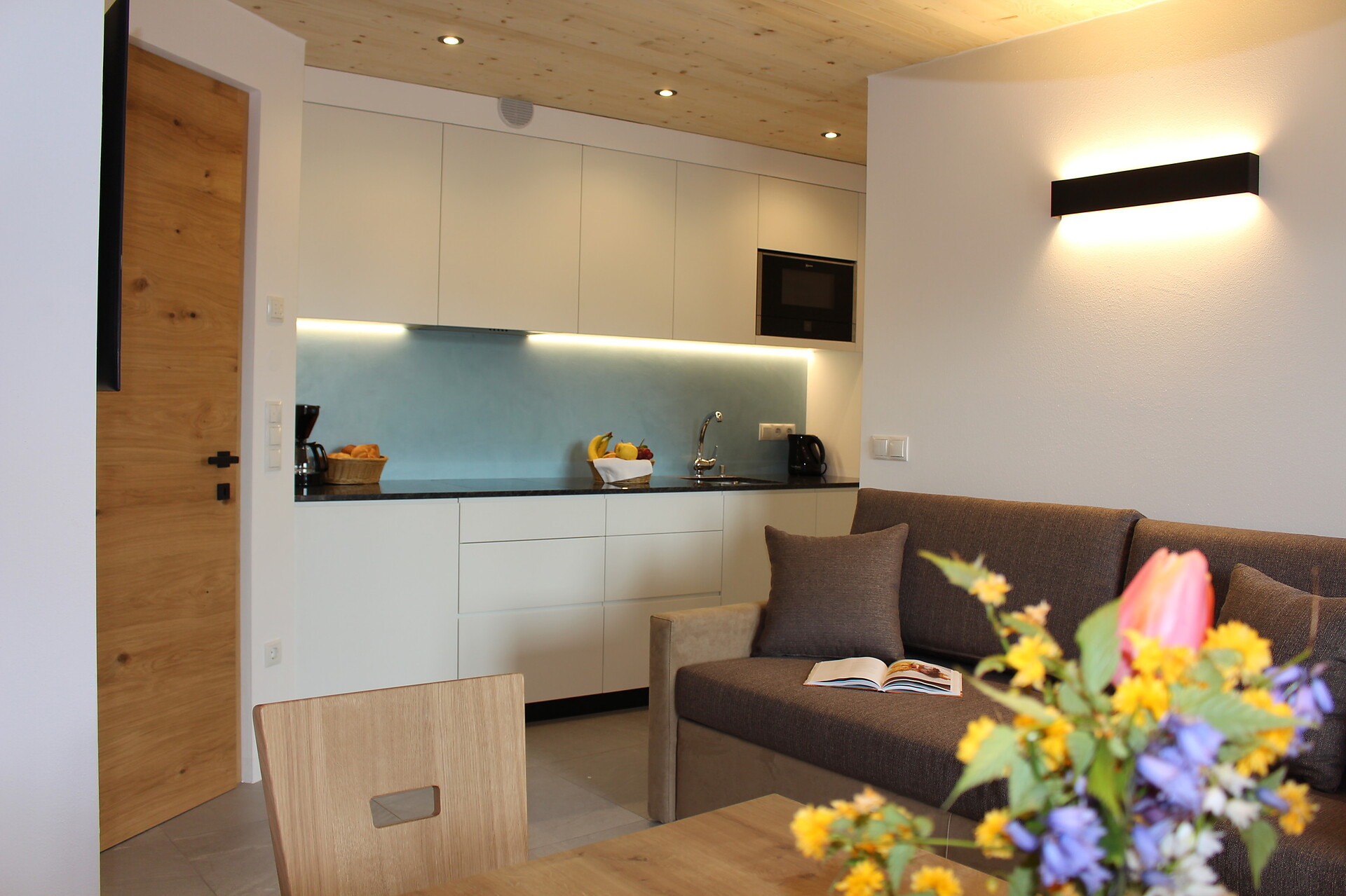 L’appartamento Zirbe misura 35m² ed è adatto a 2-4 persone. L'appartamento si trova al 3° piano e dispone di una camera da letto e di un divano letto per 2 persone nel soggiorno.