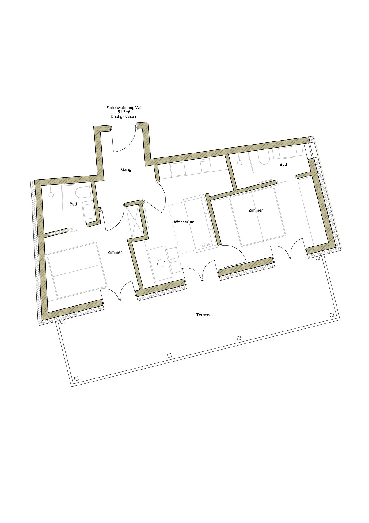L’appartamento Fichte misura 50m² ed è adatto a 4-6 persone. L'appartamento si trova al 3° piano e dispone di due camere da letto separate e di un divano letto per 2 persone nel soggiorno.