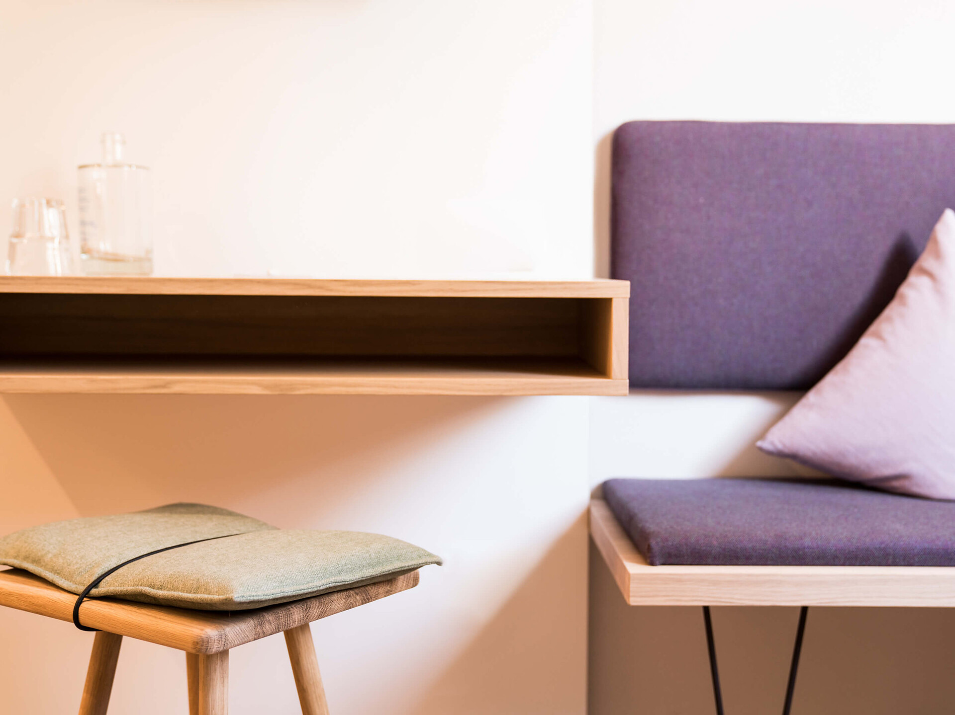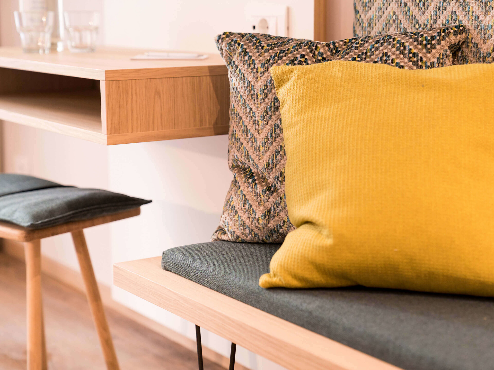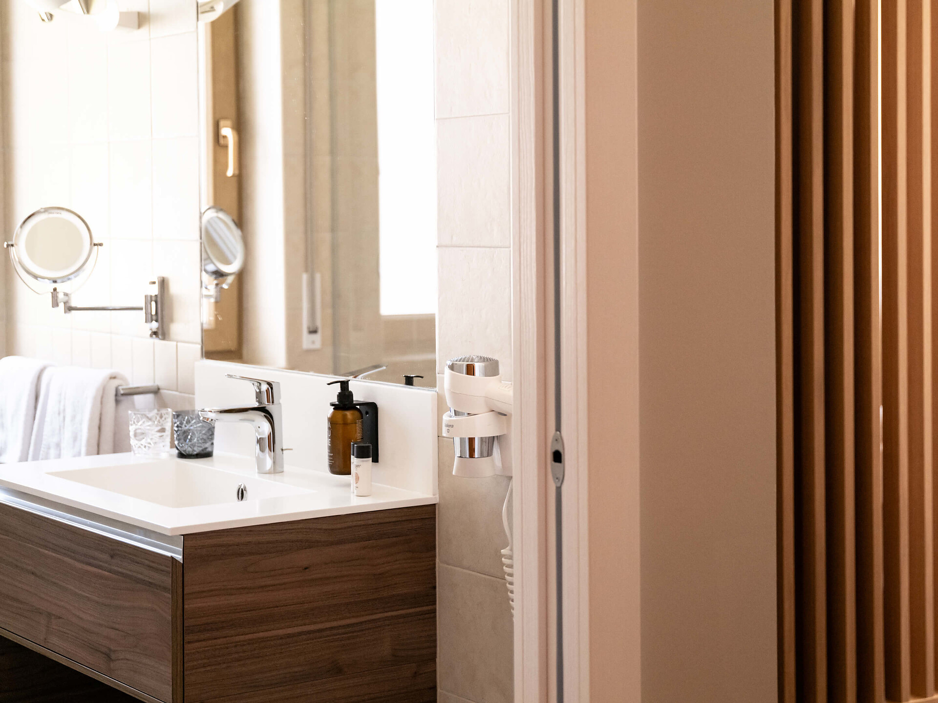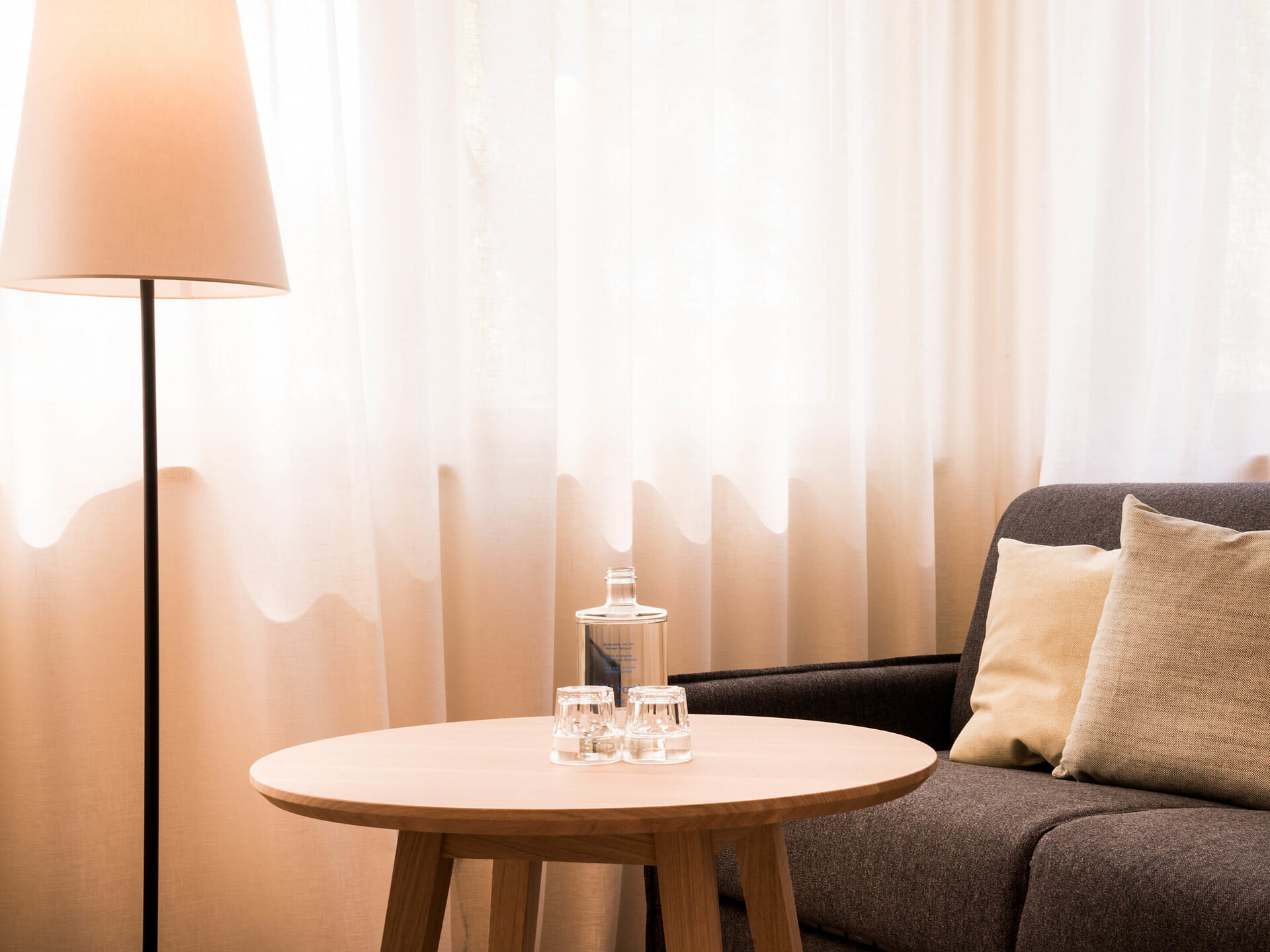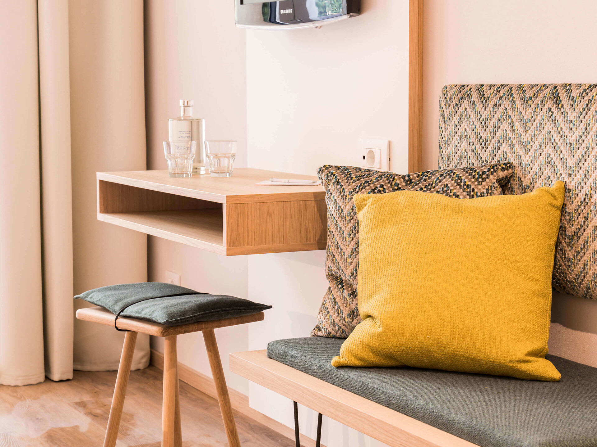 una moderna camera doppia comfort (22m²) con letto matrimoniale king-size e loggia privata, bagno (alcuni sono senza barriere) con grande doccia a pioggia, WC, specchio per il trucco e asciugacapelli, TV satellitare con schermo piatto, cassaforte per portatili, WIFI internet, telefono, frigorifero e bollitor