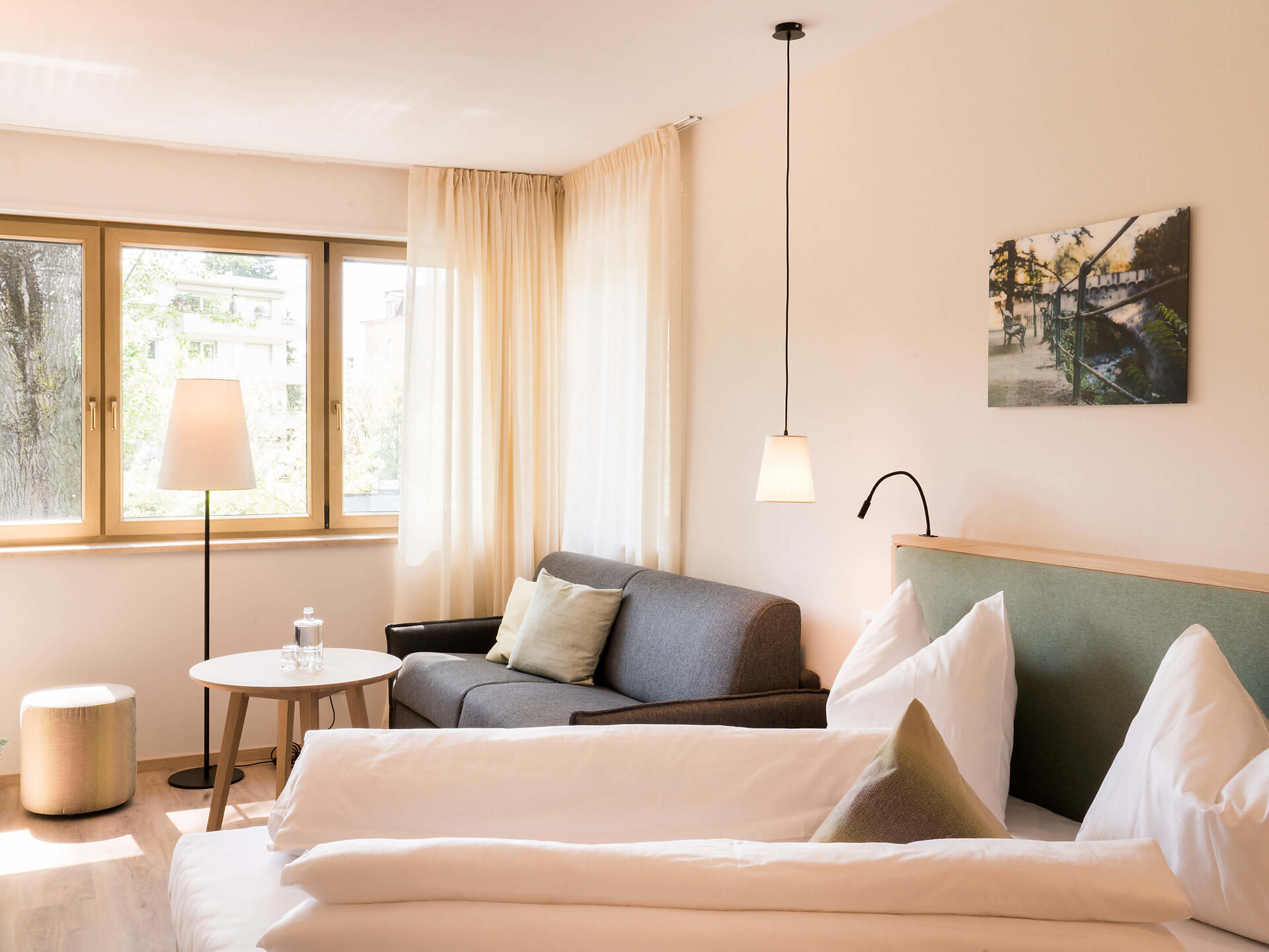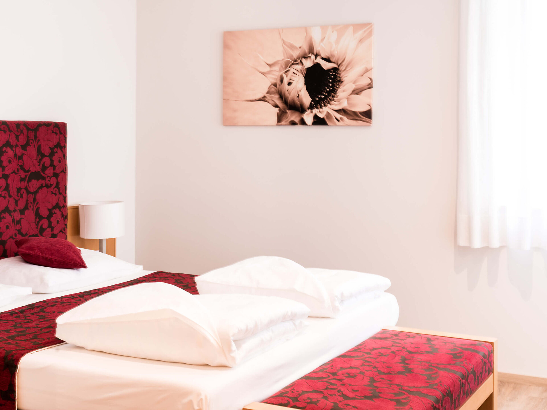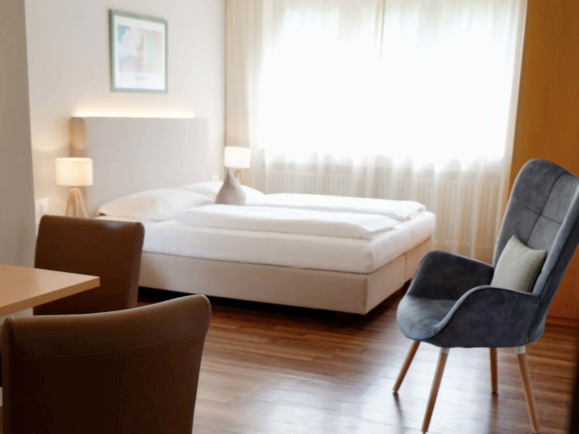 Trovate la vostra meta ideale nelle nostre camere accoglienti e suite con doccia, WC, asciugacapelli, telefono, TV satellitare e balcone. Al mattino potrete gustare una ricca colazione a buffet. E nel nostro grande giardino vi rilassate durante l'estate nella vasca idromassaggio e nella piscina riscaldata sotto il cielo aperto.