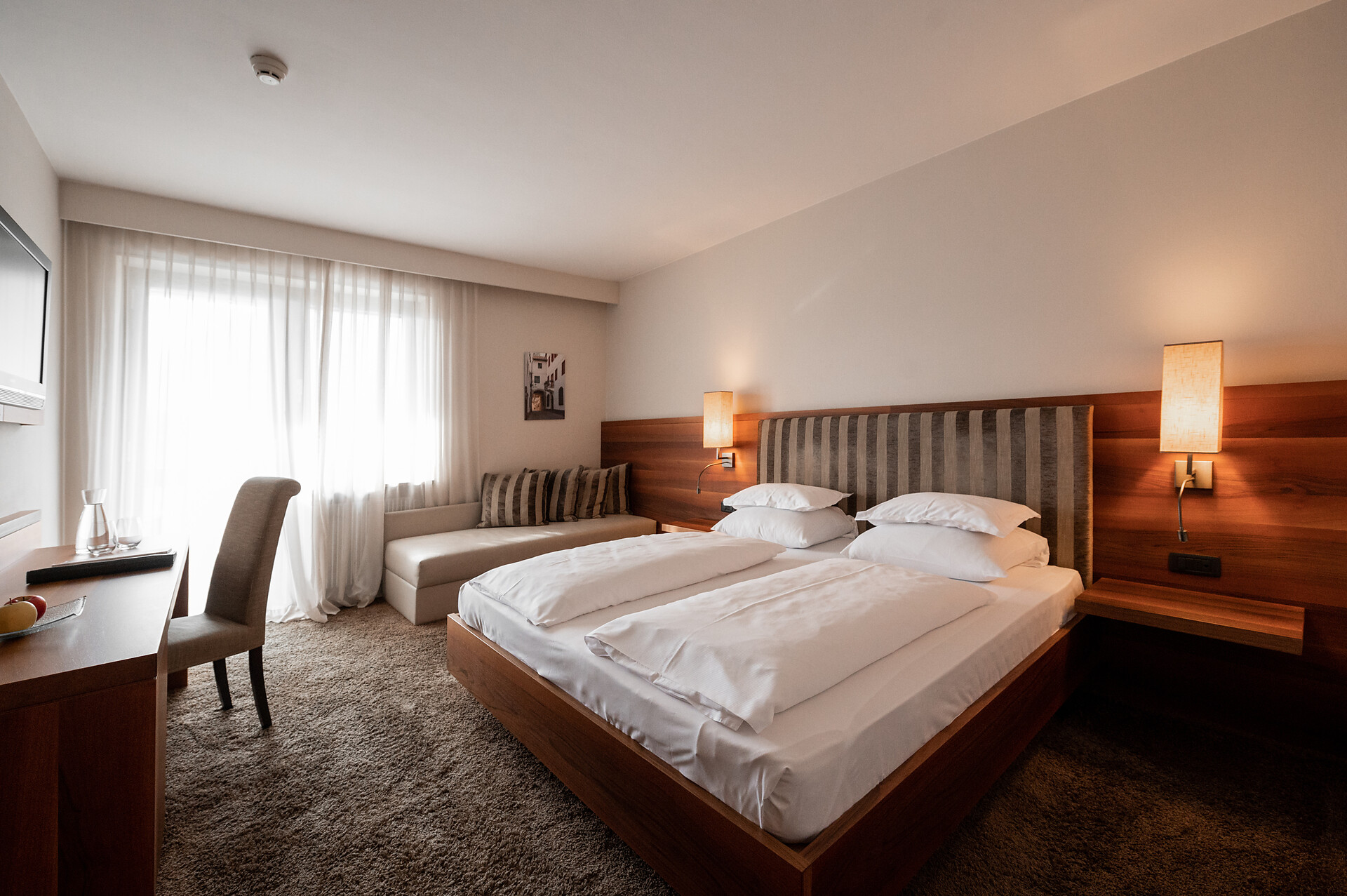 Arrivati alla seconda generazione, i fratelli Stefan e Christoph Huber guidano l’hotel di famiglia con uno sguardo attento al contemporaneo e il calore di sempre.