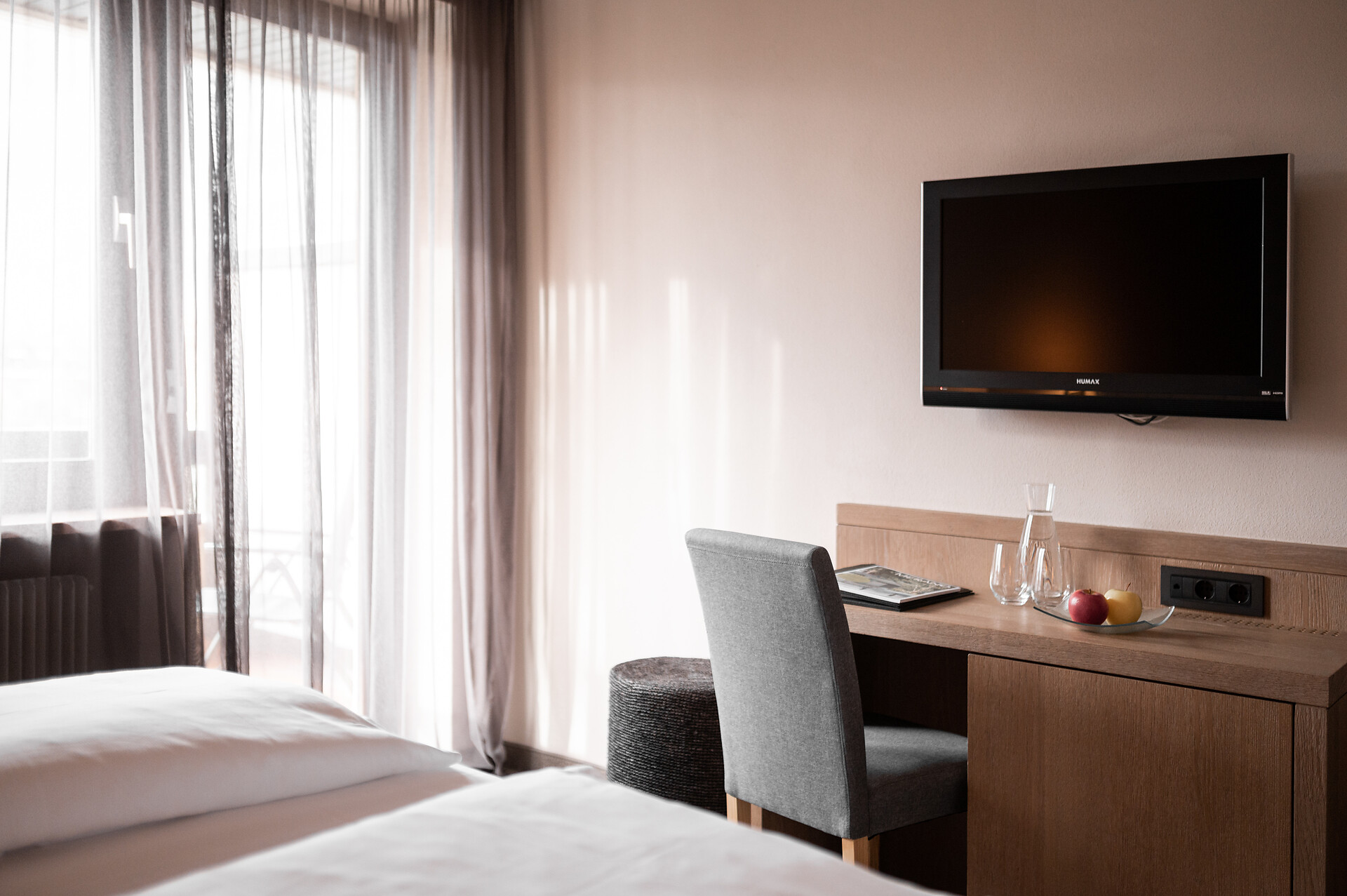 Un grande parco, una terrazza panoramica, una piscina esterna e una interna, l‘area benessere con saune e aree massaggi, un ristorante e un bar, diverse camere doppie e una suite spaziosa, 15 minuti a piedi fino al centro di Merano - 5 minuti con i nuovi e-bike.