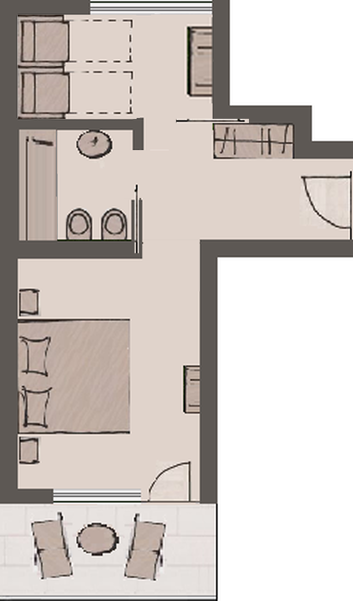 Le nostre Family Rooms offrono 30 m² di spazio sufficiente per tutta la famiglia. Un’area separata con porta scorrevole garantisce privacy per uno o due bambini, mentre i genitori possono rilassarsi nell’area principale. La stanza dispone di un balcone soleggiato esposto a sud e di un bagno condiviso utilizzabile da tutta la famiglia.