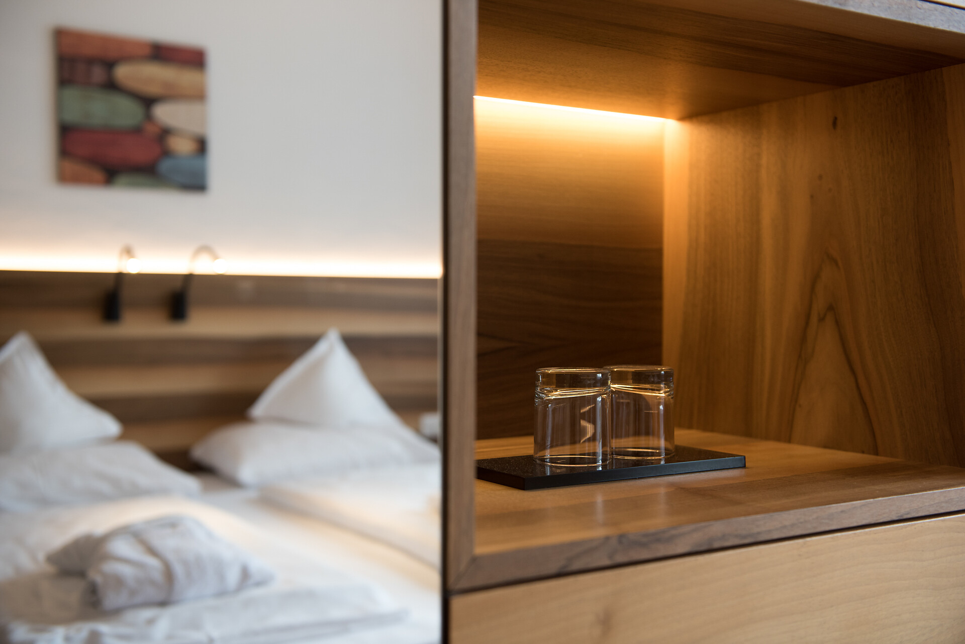 Le nostre nuove Deluxe Double Room combinano design moderno con arredi di alta qualità e un comfort abitativo particolarmente piacevole. Toni caldi del legno, materiali pregiati e grandi porte-finestre garantiscono molta luce naturale. Ogni camera è insonorizzata e dispone di un soleggiato balcone esposto a sud, permettendovi di godere appieno di tranquillità e privacy. Queste camere offrono ancora più spazio e comfort rispetto alla categoria Superior.