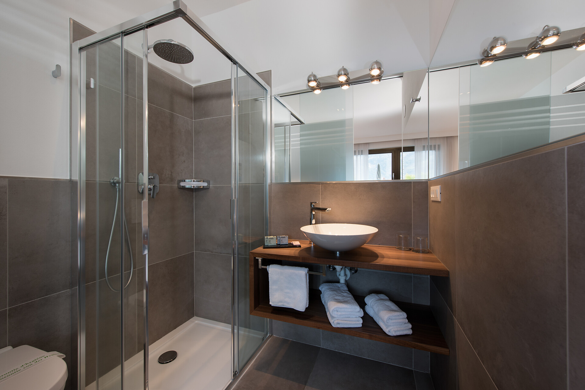 Bagno con doccia / WC, asciugacapelli, specchio cosmetico, accappatoio, pantofole e prodotti di cortesia