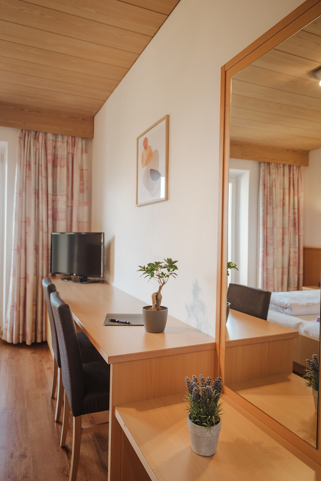Il nostro hotel è situato in una piacevole e tranquilla posizione, in mezzo al verde. Troverete camere ampie, ben arredate, tutti con servizi, telefono, cassaforte, TV, WIFI, balcone. Ricca colazione a buffet, buffet d'insalata, serate tirolesi. Ottima cucina genuina e saporita con grandi variazioni di menu.