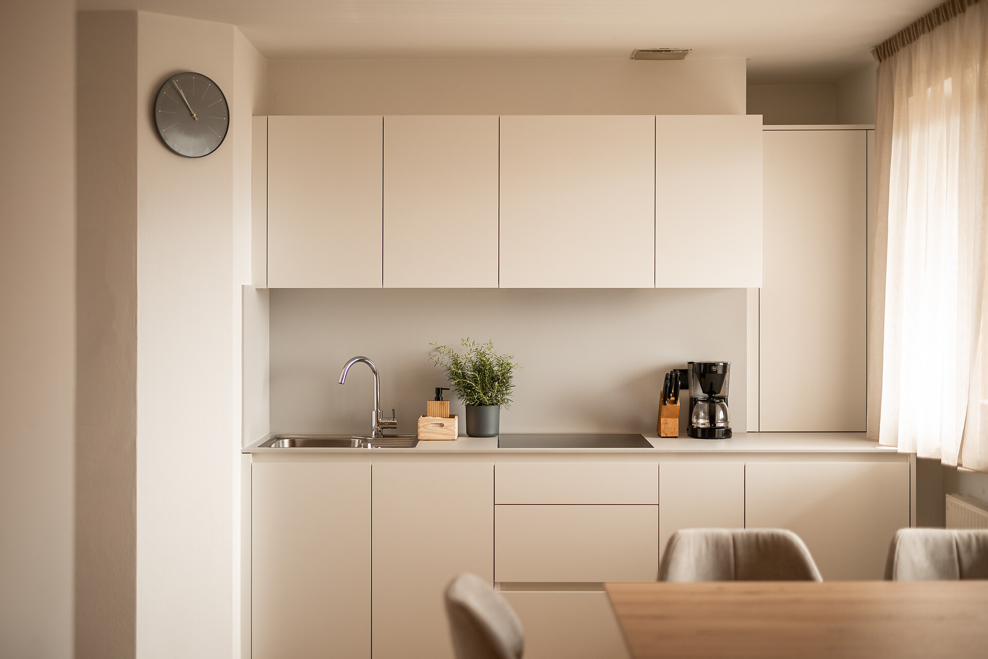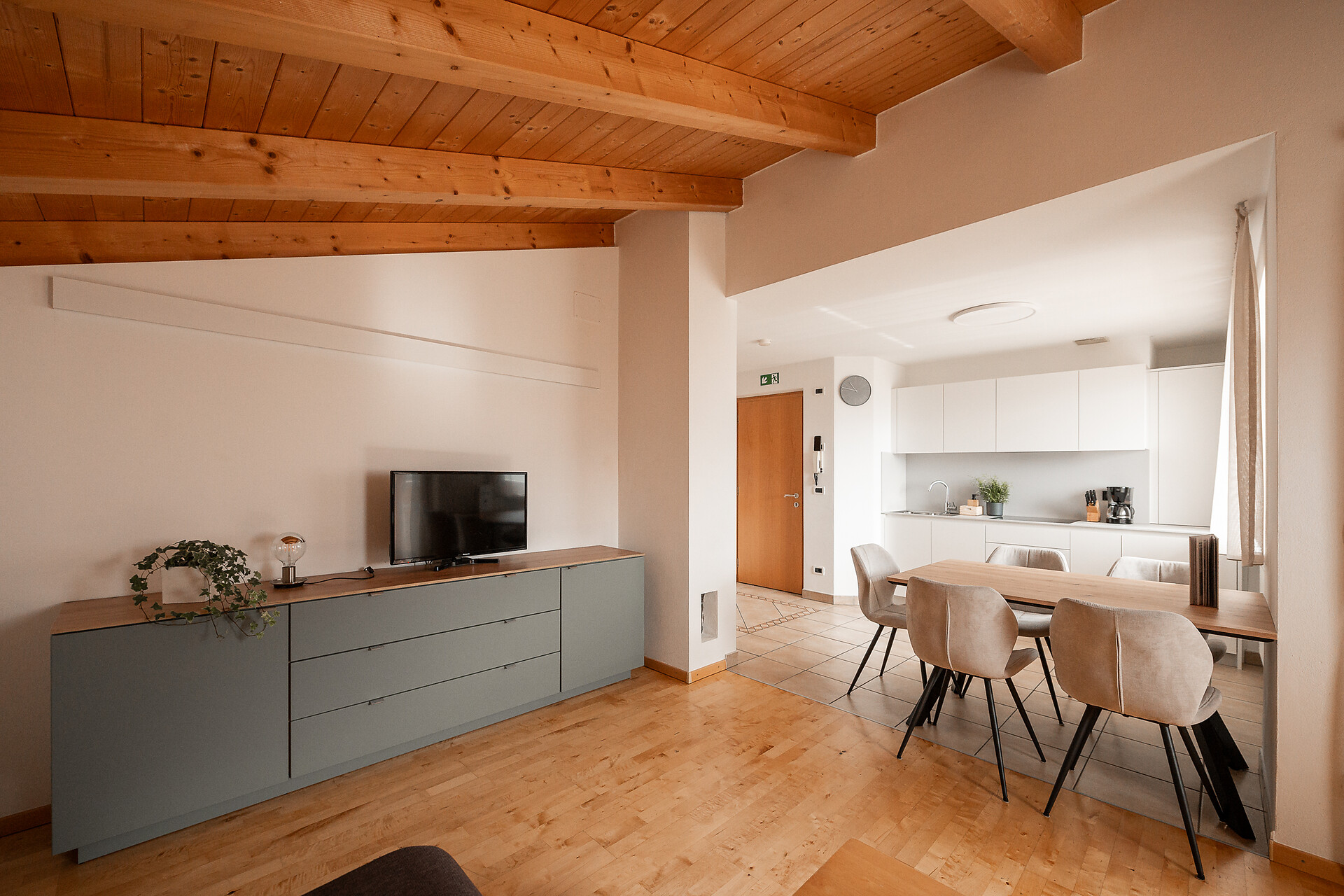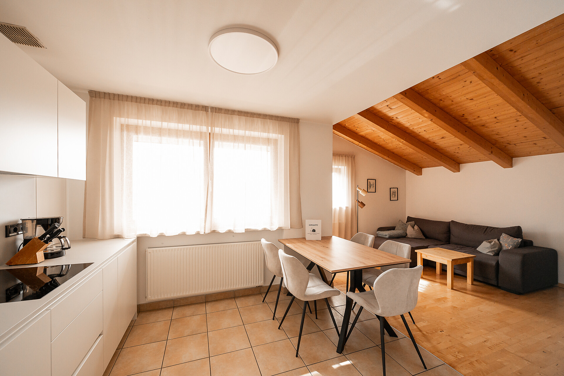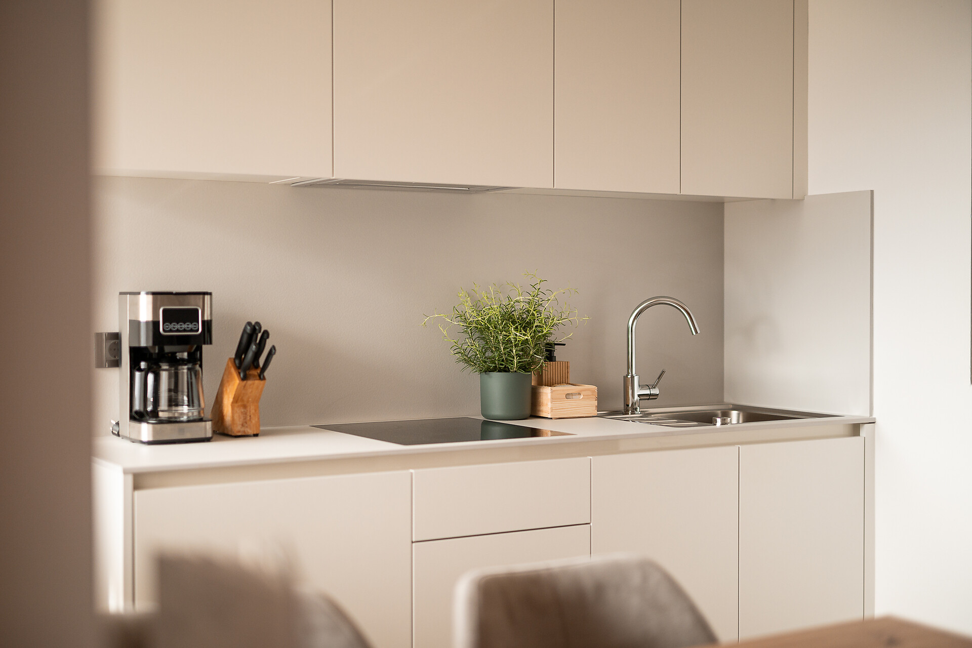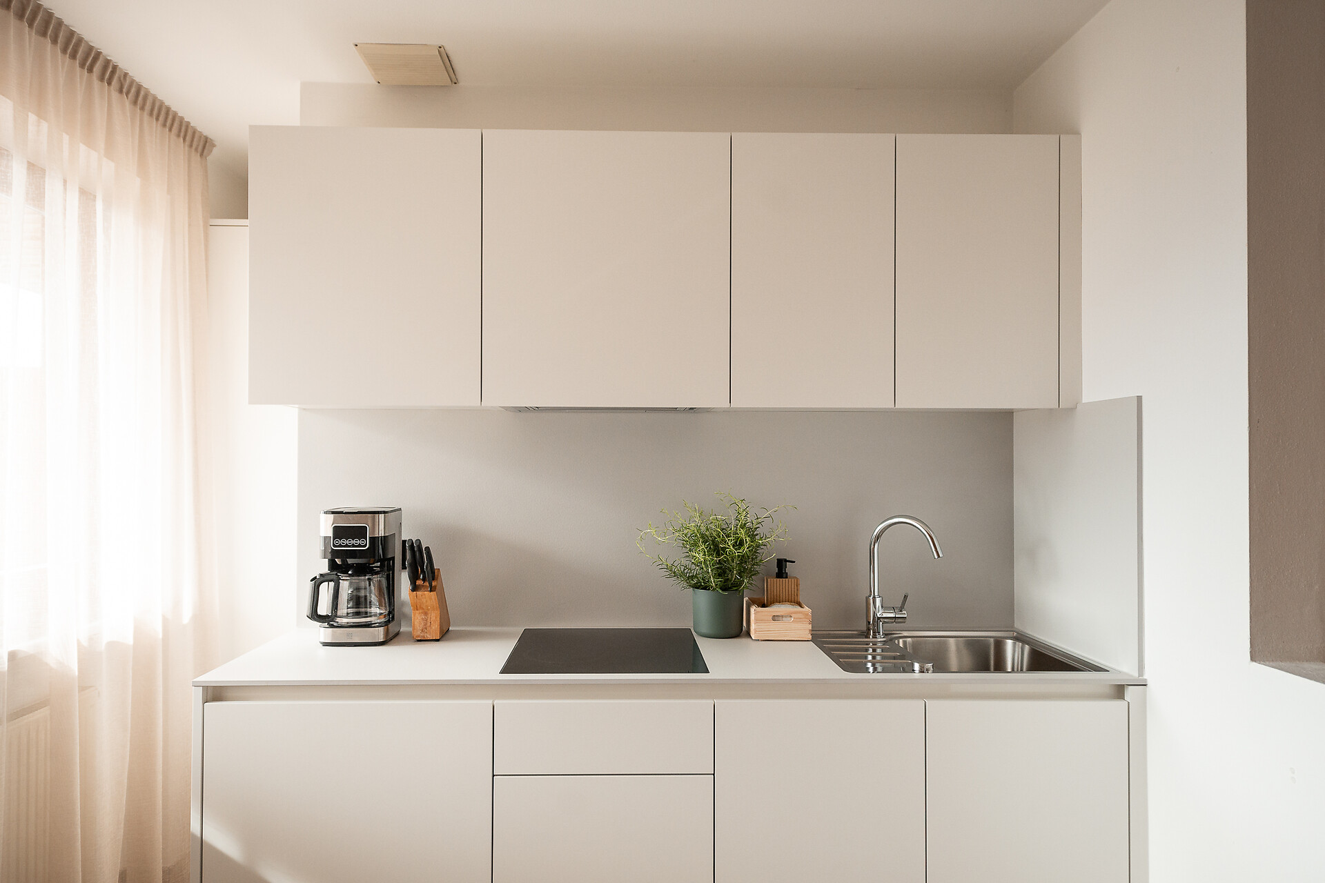 Appartemento con due camere da letto separati, una camera di soggiorno con angolo di cucina e un bagno separato