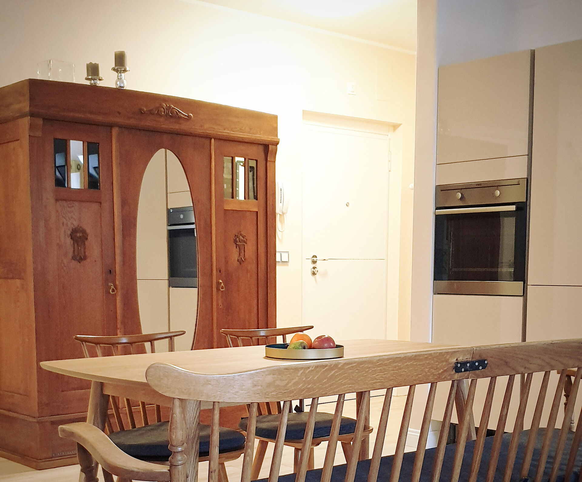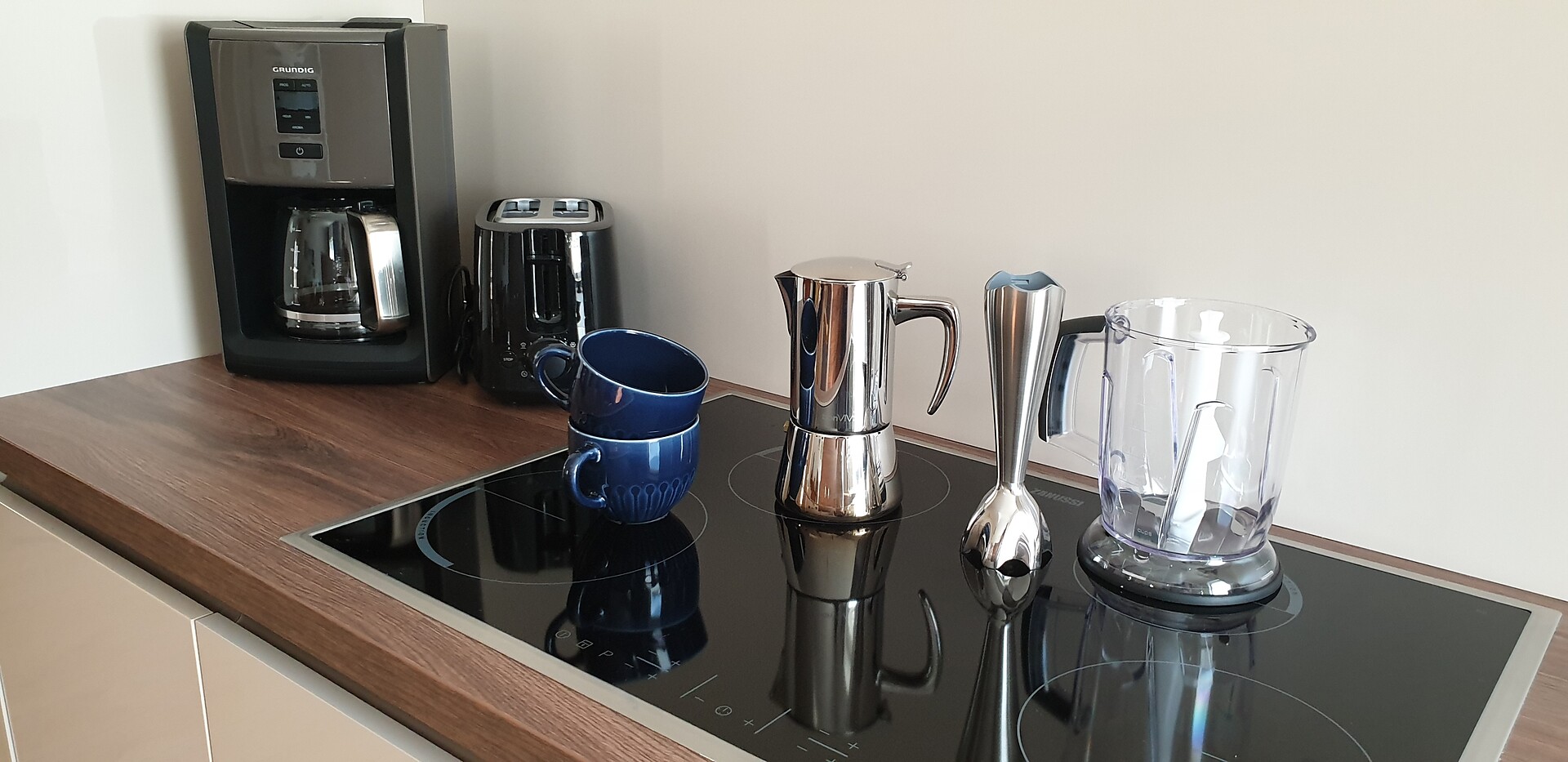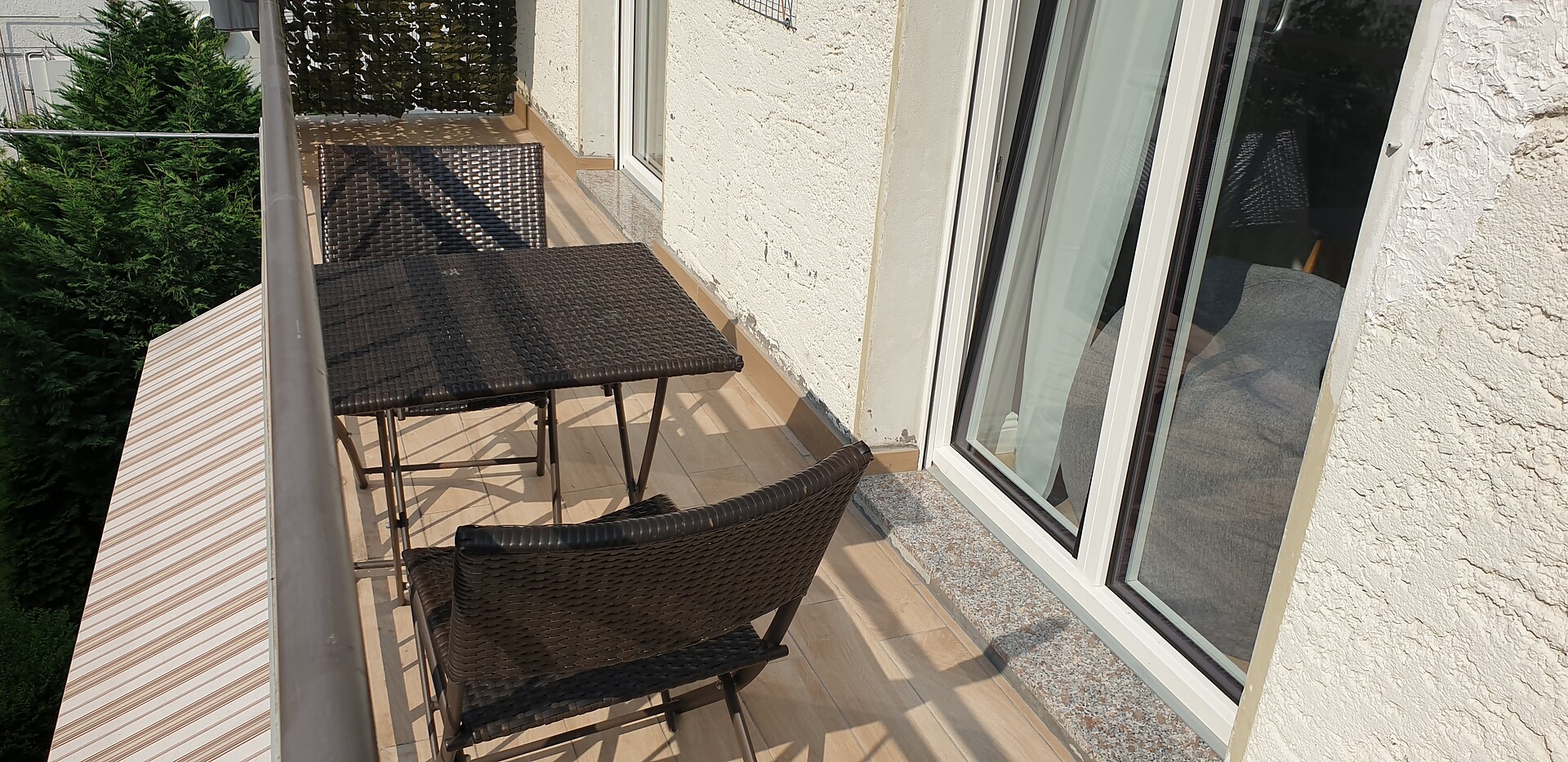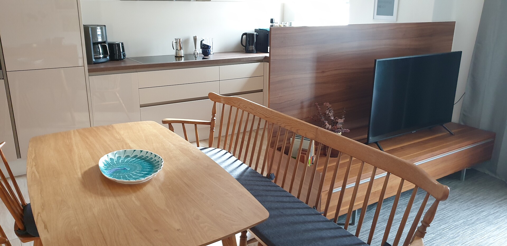 L'appartamento offre con 75m² molto spazio per quattro persone. Al centro dell'appartamento si trova la cucina con una bella zona pranzo e un divano letto. Adiacenti ci sono due camere da letto (in totale 4 letti), un bagno moderno con finestra e un ripostiglio, oltre a due balconi.