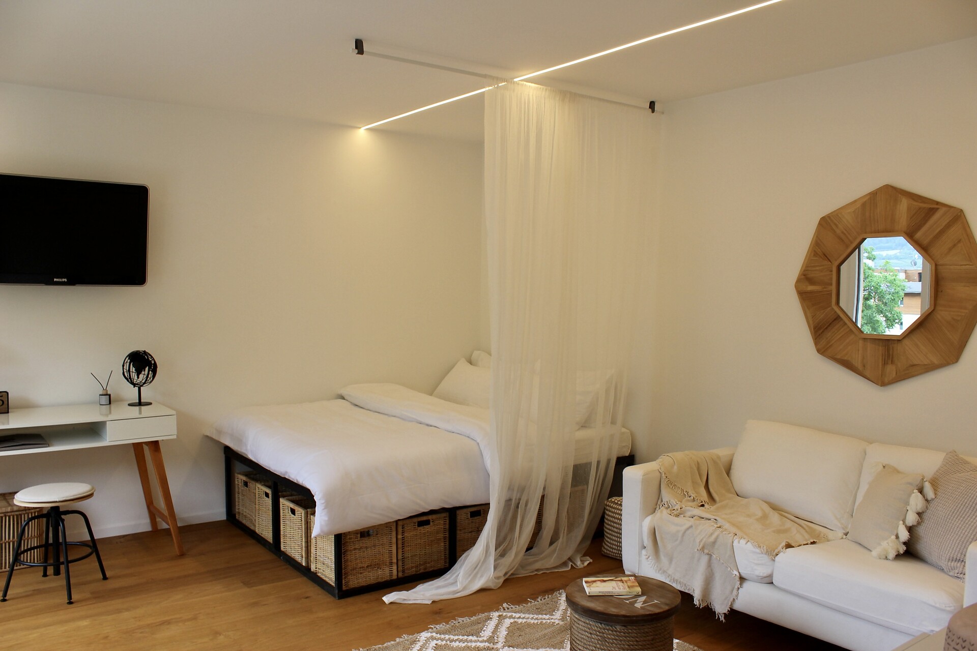 L'appartamento si trova in posizione centrale nel romantico paese di Naturno, a circa 15-20 minuti di auto dalla città di cura di Merano. Completamente ristrutturato con grande attenzione ai dettagli, l'appartamento offre una grande atmosfera e una fuga di sole ed è il punto di partenza ideale per escursioni, gite in montagna e in bicicletta. L'appartamento è suddiviso in ingresso, bagno, cucina, zona giorno con letto matrimoniale (1,60x2m), divano e tavolo da pranzo.
