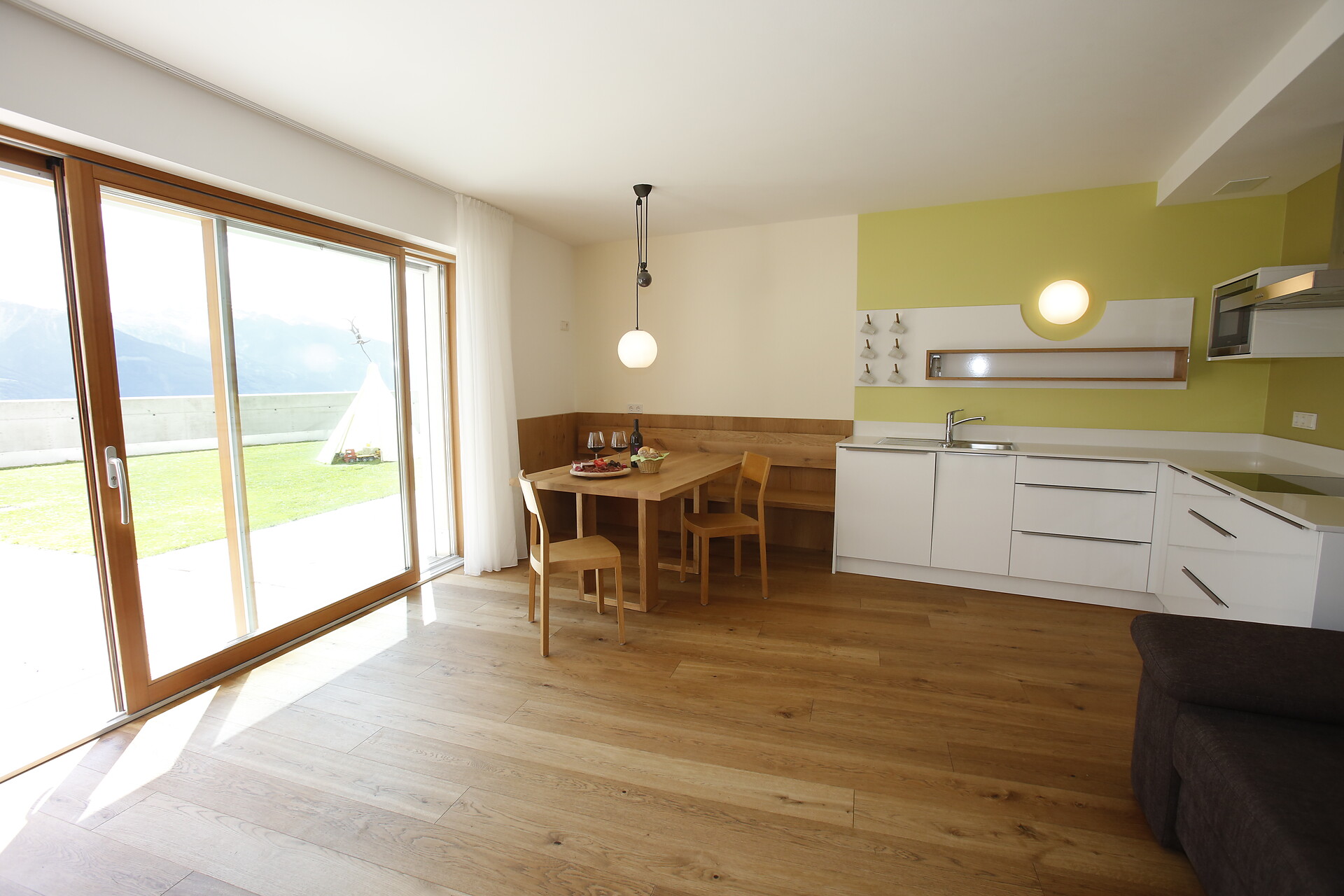 Nella nostra casa per le vacanze di recente costruzione, ci sono 3 appartamenti con una splendida vista. I nostri appartamenti sono confortevolmente arredate con cucina completamente attrezzata con piano cottura in vetroceramica a 4 fuochi, un forno a microonde, lavastoviglie, macchina per il caffè, frigorifero e SAT / TV.