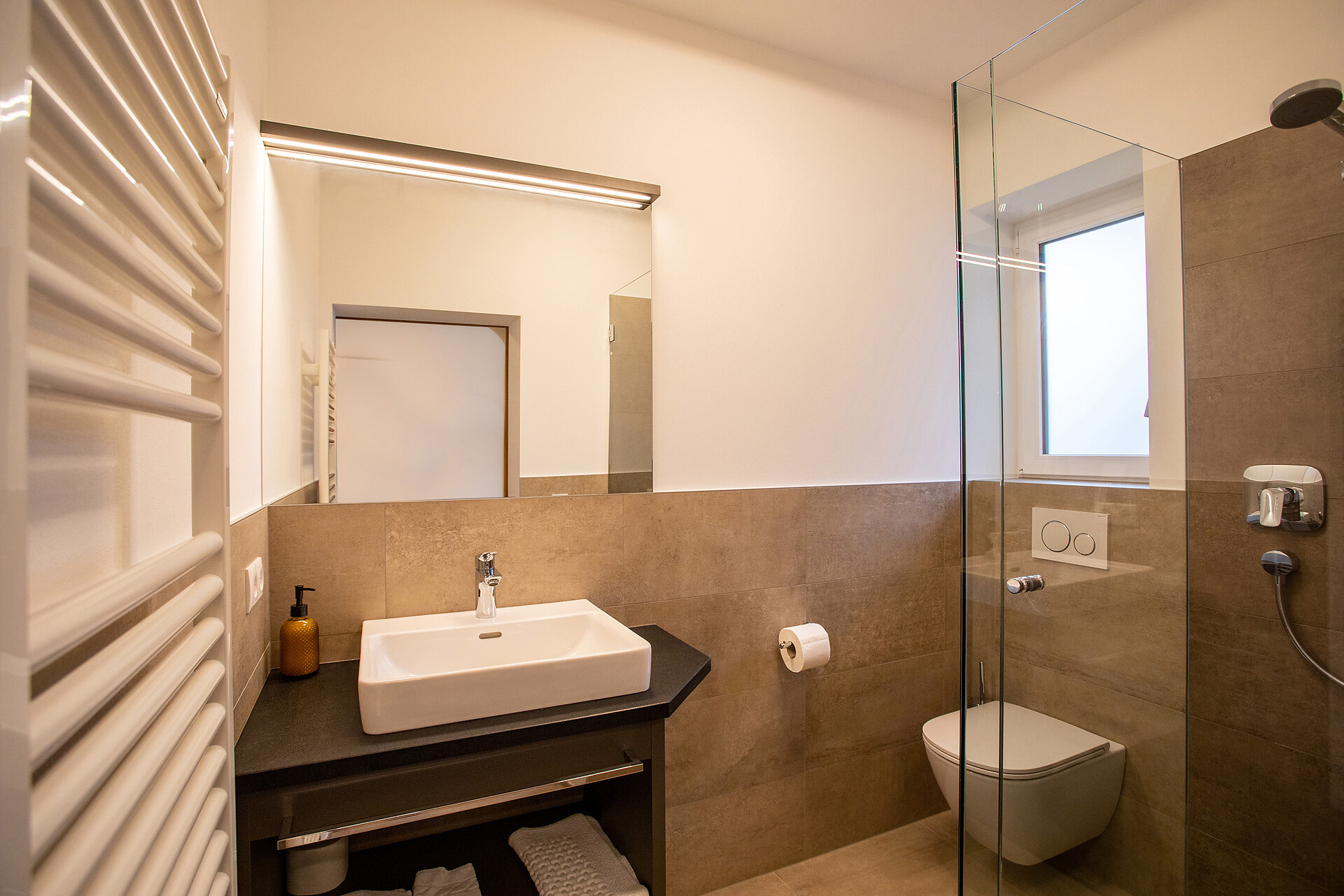 BAGNO RINNOVATO con doccia, WC, asciugacapelli, pavimento in legno, telefono, TV con canali satellitari, WLAN gratuito, alcune con balcone. Sono possibili diverse disposizioni delle stanze e leggere variazioni in m².