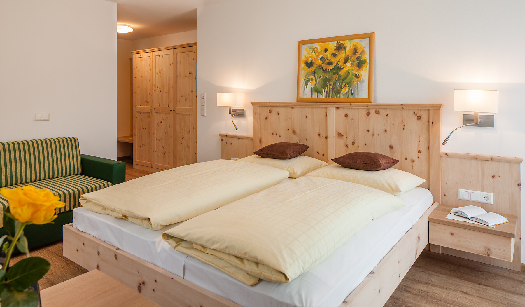 Appartamento per famiglia al primo piano, anticamera di 13 mq con divano lettodoppio, doccia/WC, vano d'abitazione spazioso con cucina completamente arredata, safe, televisione, connessione internet, balcone.