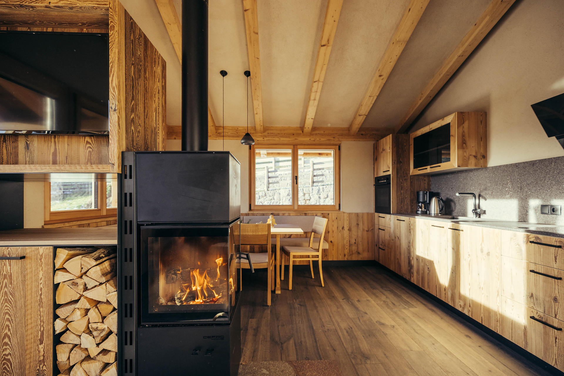 Allestimento: Letto matrimoniale, Divano letto, Stufa in maiolica/caminetto, Biancheria da letto disponibile, Appartamento non fumatori, Cucina abitabile, Macchina da caffè, Lavastoviglie, Stoviglie, Doccia / bagno, Bidet, Fon, TV, TV satellitare/via cavo, WLAN