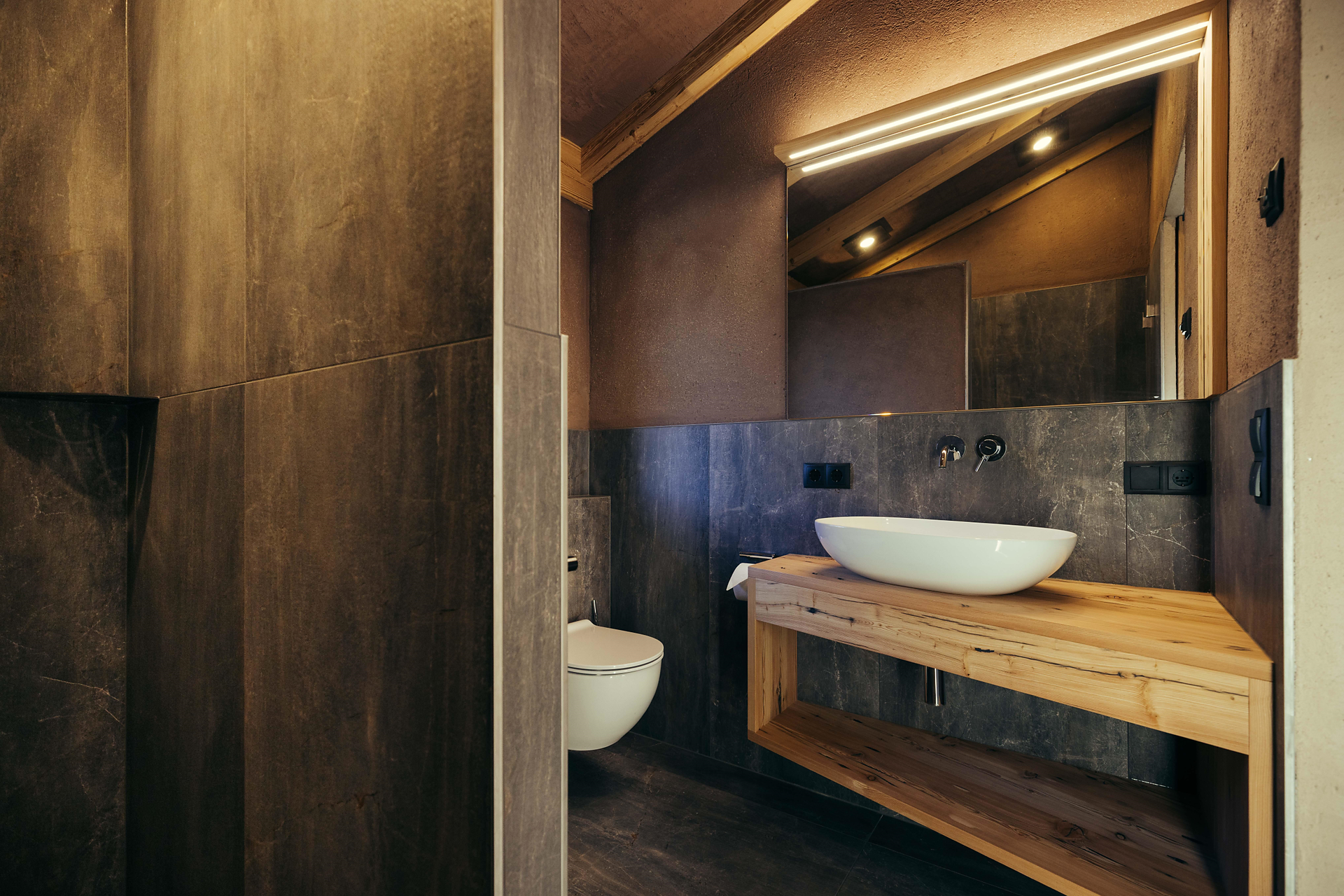 L'appartamento vacanze si trova al primo piano. Qui potrete vivere con stile e comfort e godervi la vista dal balcone rotondo verso sud e sul Monte Luco. Da qui potrete anche osservare a vostro piacimento la vita contadina!