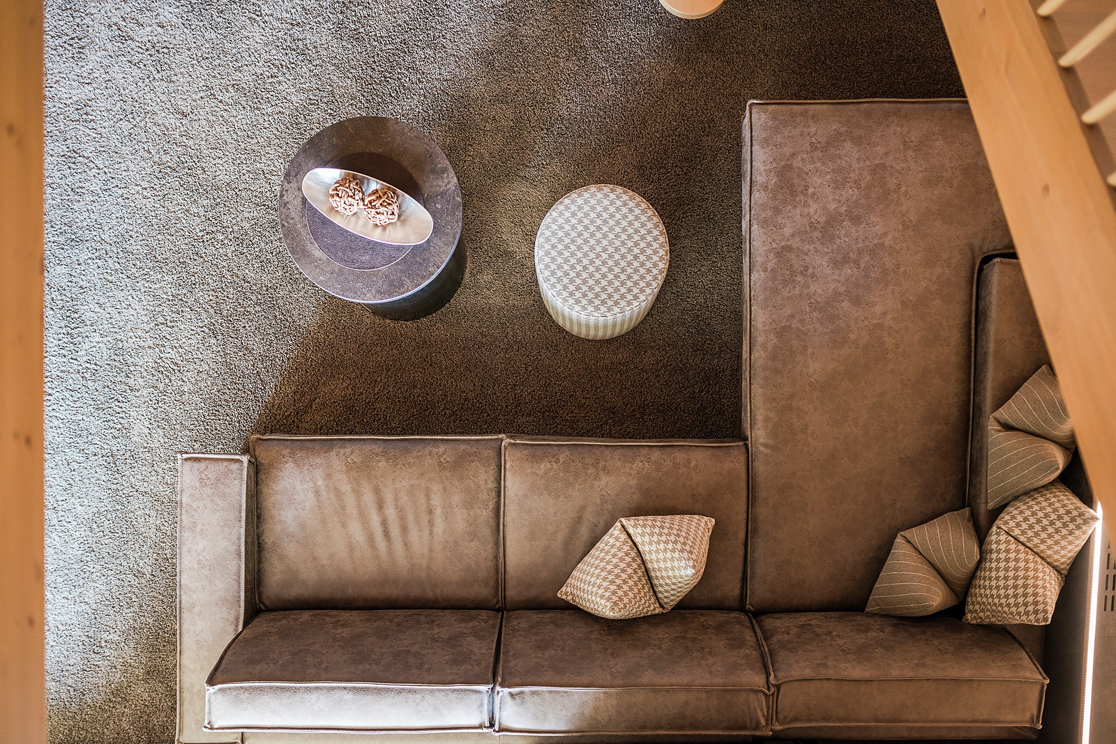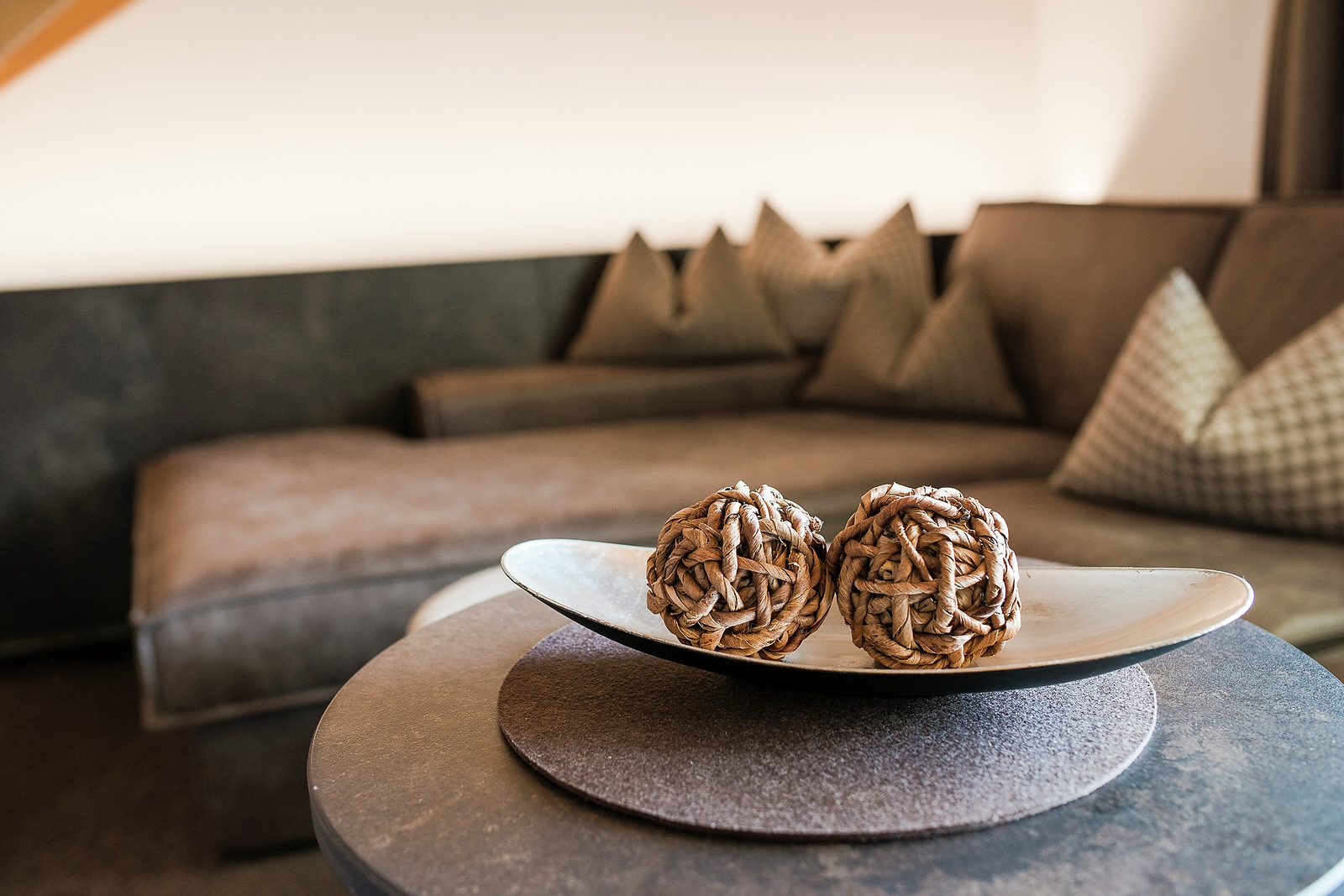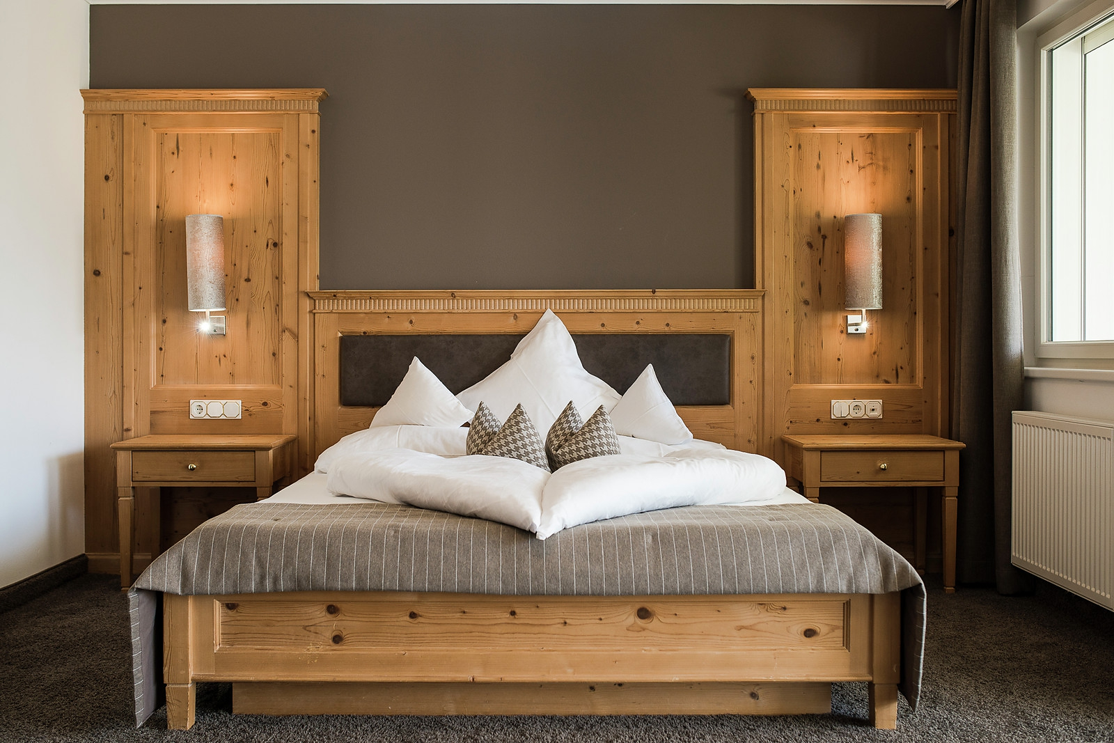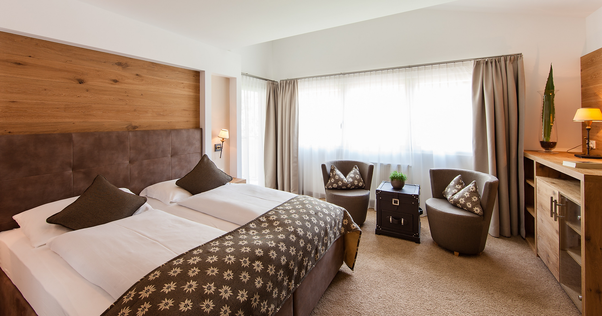 Suite „lussuosa“ (ca. 43 m²) accogliente e moderna con materassi boxspring e aria condizionata situato al primo o secondo piano. Arredamento in materiali naturali, pavimento in legno naturale, divano, scrivania, bagno aperto, doccia, WC separato, tv a schermo piatto, cassaforte, telefono, fon, frigobar, borsa wellness con accappatoio e telo per la sauna. Posto macchina in garage. La Suite è accessibile ai disabili.