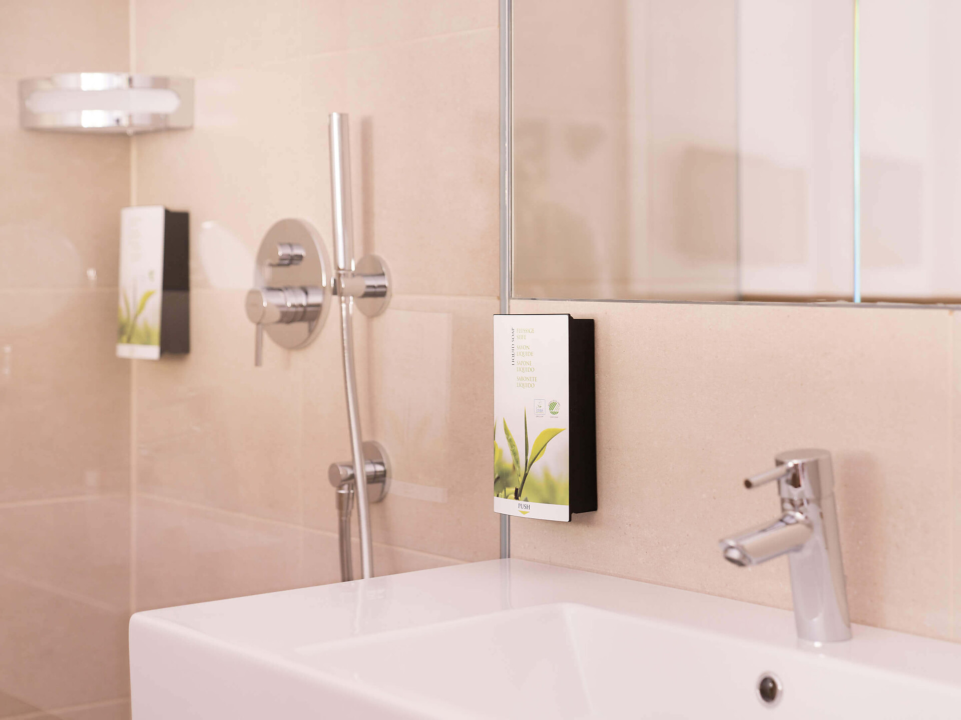 un' accogliente, moderna camera singola (15 m²) con un bagno aperto con grande doccia a pioggia, WC separato, specchio per il trucco e asciugacapelli, TV satellitare con schermo piatto, cassaforte, WIFI internet, telefono, frigorifero e bollitore