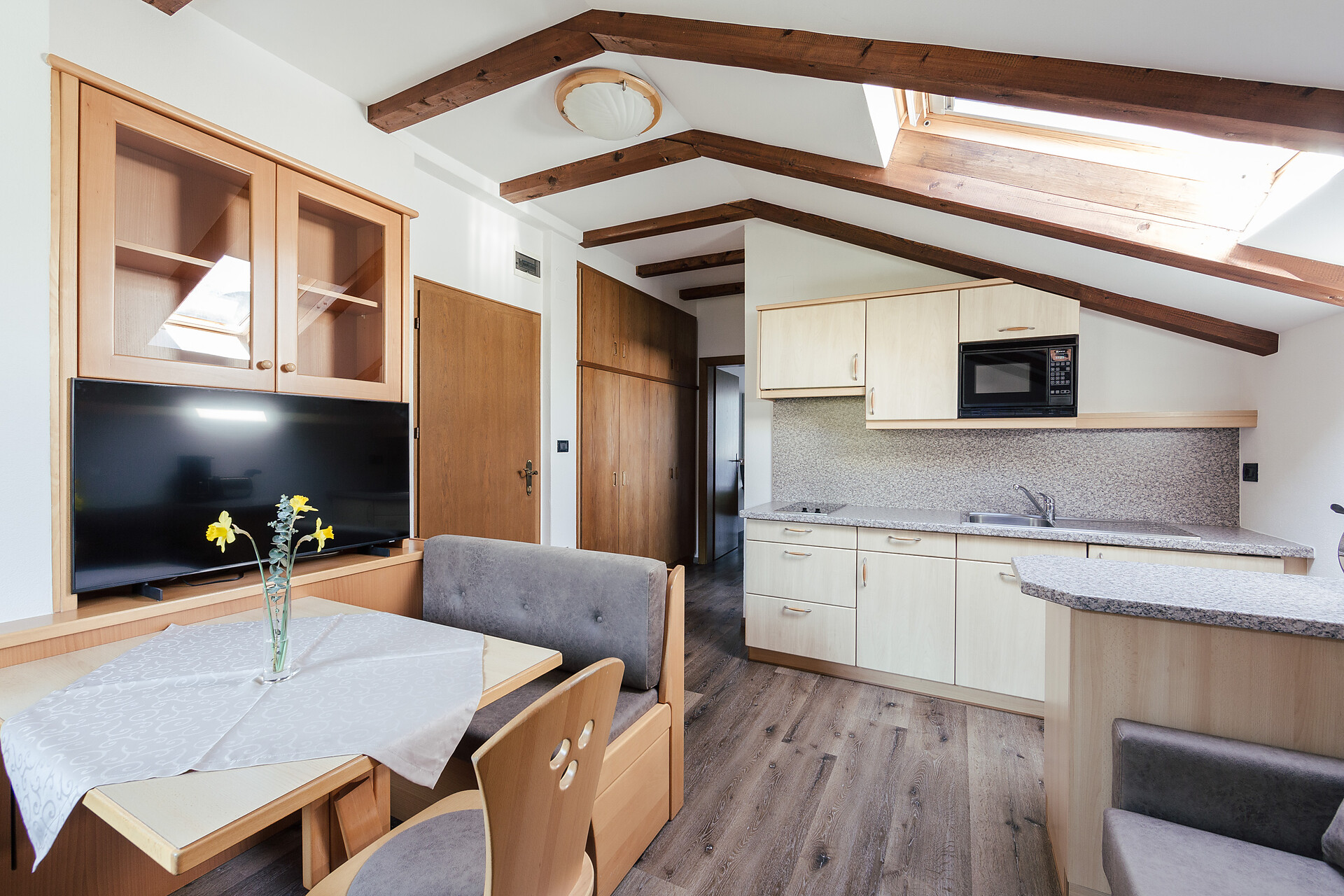 Tutte le camere sono con balcone esposto a sud-ovest, bagno, asciugacapelli, W-LAN gratuito, TV satellitare e cassaforte.