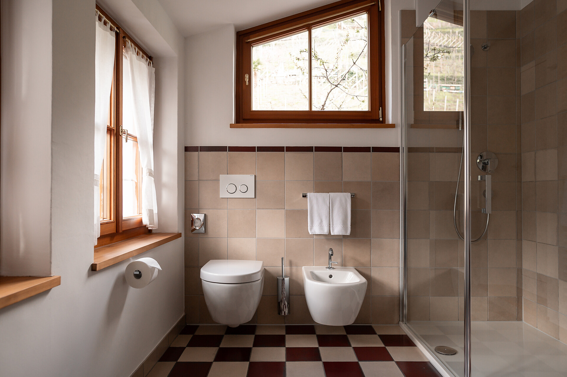 Gli antichi pavimenti in legno di queste due camere ricavate dalla vecchia Stube ne hanno vista di storia! Ci potrebbero raccontare molti segreti!La luminosa linearità del bagnocontrasta con tanta memoria. Questa camera rappresenta la sistemazione ideale per coloro che preferiscono vivere al pianterreno.