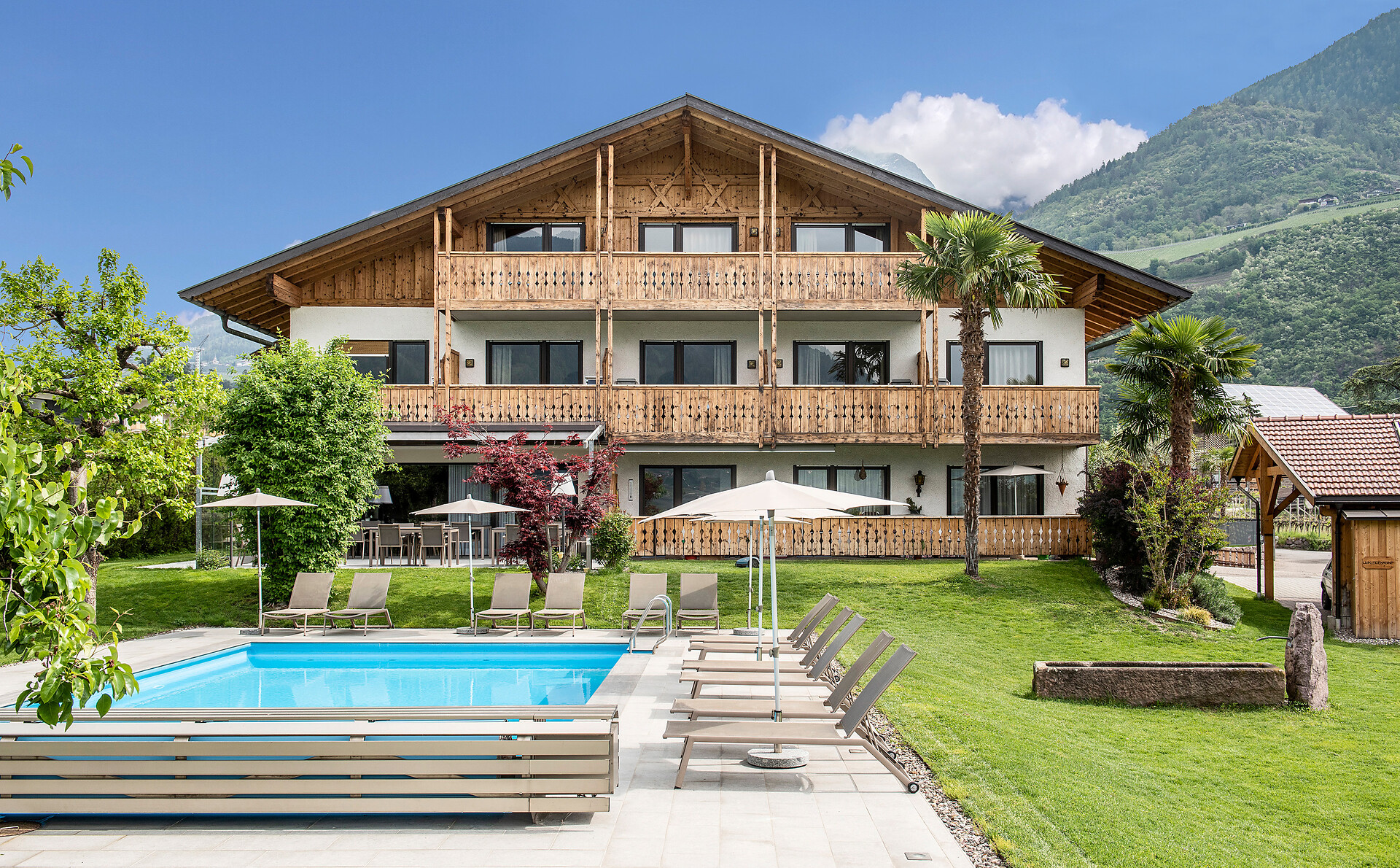 Un'apprezzata meta di vacanza a Merano per tutti coloro che cercano una vacanza tranquilla e rilassante in Alto Adige. Per noi l’ospitalità e la cordialità sono molto importanti! Siamo un’azienda solida e legata alle tradizioni altoatesine, che coltiviamo e viviamo ogni giorno. L’albergo e gli appartamenti si trovano in mezzo ai nostri frutteti e vigneti, alle porte della città termale di Merano ma lontano dalla confusione. Un ampio giardino, un prato per prendere il sole con piscina e una sauna sono la combinazione perfetta per il relax di cui avete bisogno!