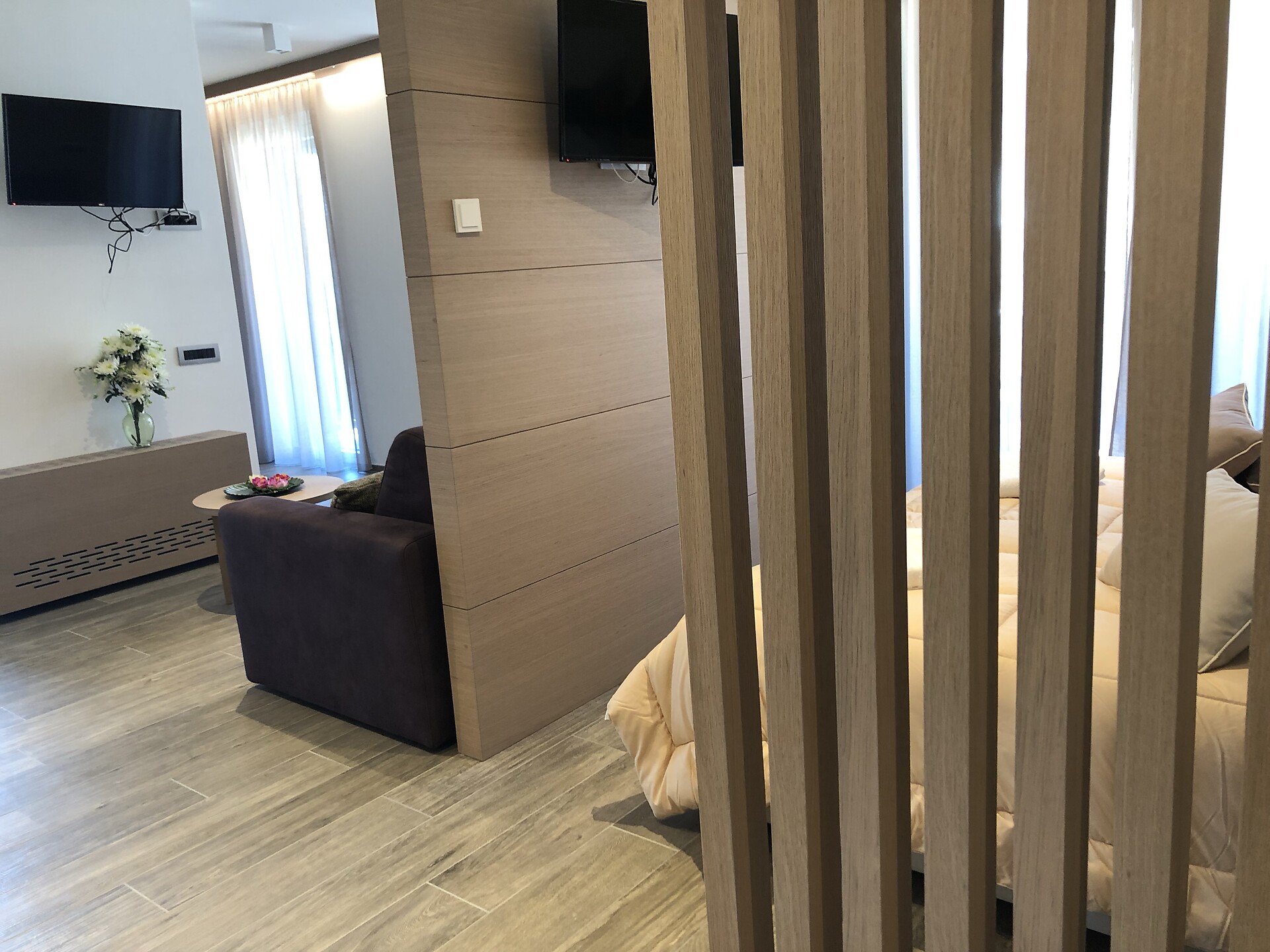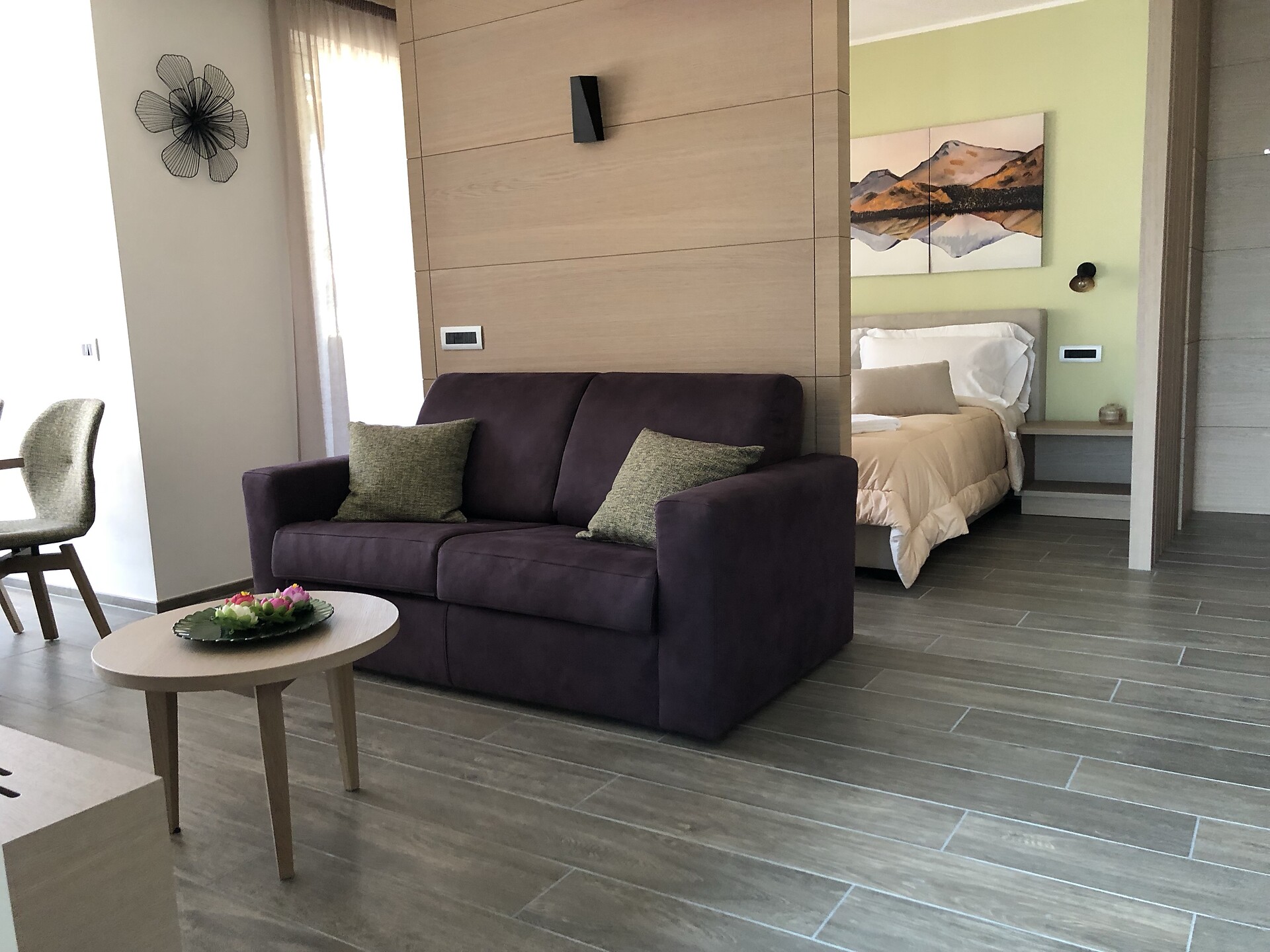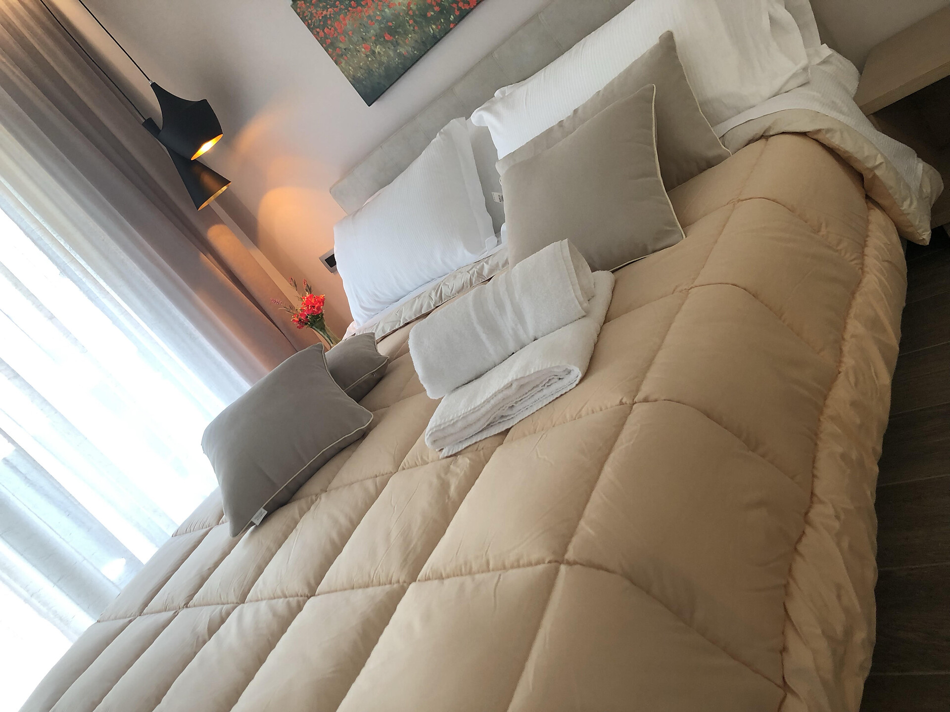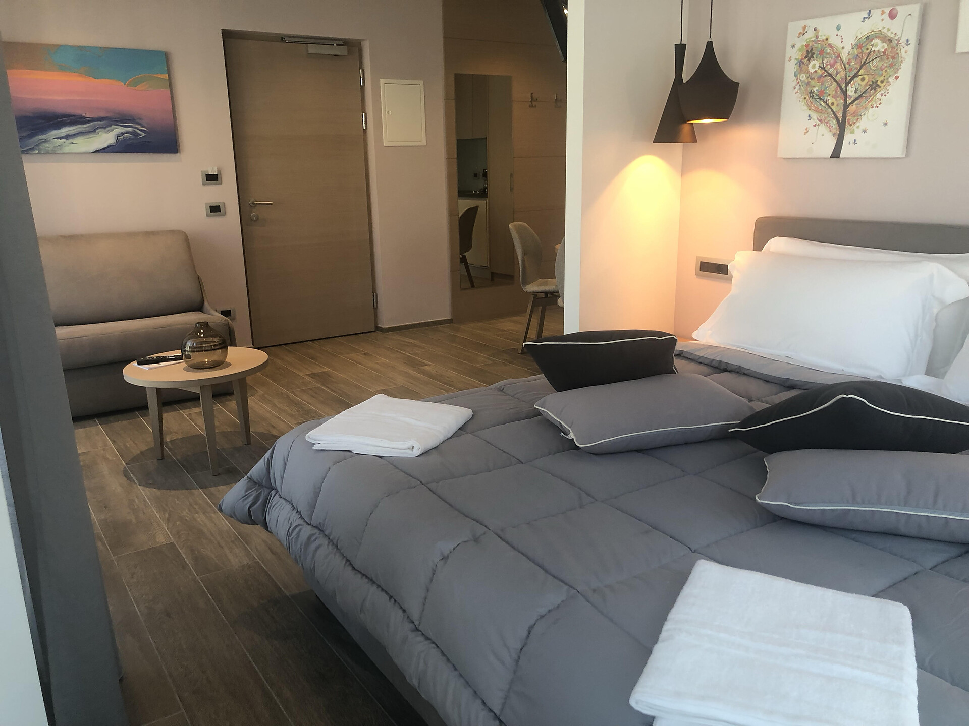 Allestimento: letto matrimoniale - divano letto 2 posti – balcone doppio - ambiente climatizzato – biancheria da letto disponibile – cassaforte – soggiorno/cucina abitabile – macchina del caffè – bollitore per acqua – fornello ad induzione – microonde – doccia/bagno con bidet – asciugamani – asciuga capelli – tv satellitare - collegamento via cavo ad internet – wifi – pulizia su richiesta.
