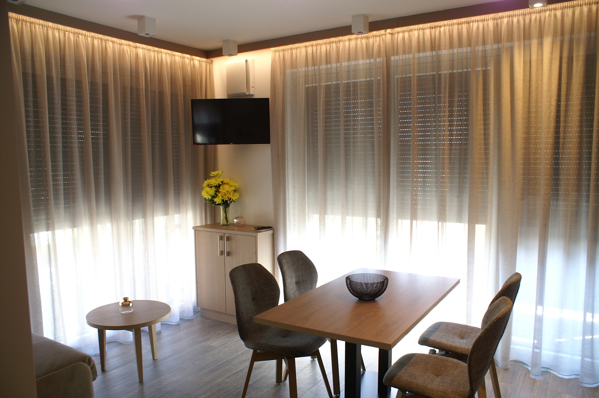 Letto matrimoniale, Divano letto matrimoniale, Balcone, Terrazza, Aria condizionata, Camera antiallergica , Soggiorno separato, Biancheria da letto disponibile, Cassaforte, Appartamento non fumatori, Cucina separata, Cucina abitabile, Macchina da caffè, Piano cottura elettrico, Stoviglie, Piano cottura, Doccia / bagno, Bidet, Fon, Accappatoio, Asciugamani, TV, TV satellitare/via cavo, WLAN, Collegamento internet , Pulizia su richiesta, Edificio principale, Vista panoramica, Lato sud