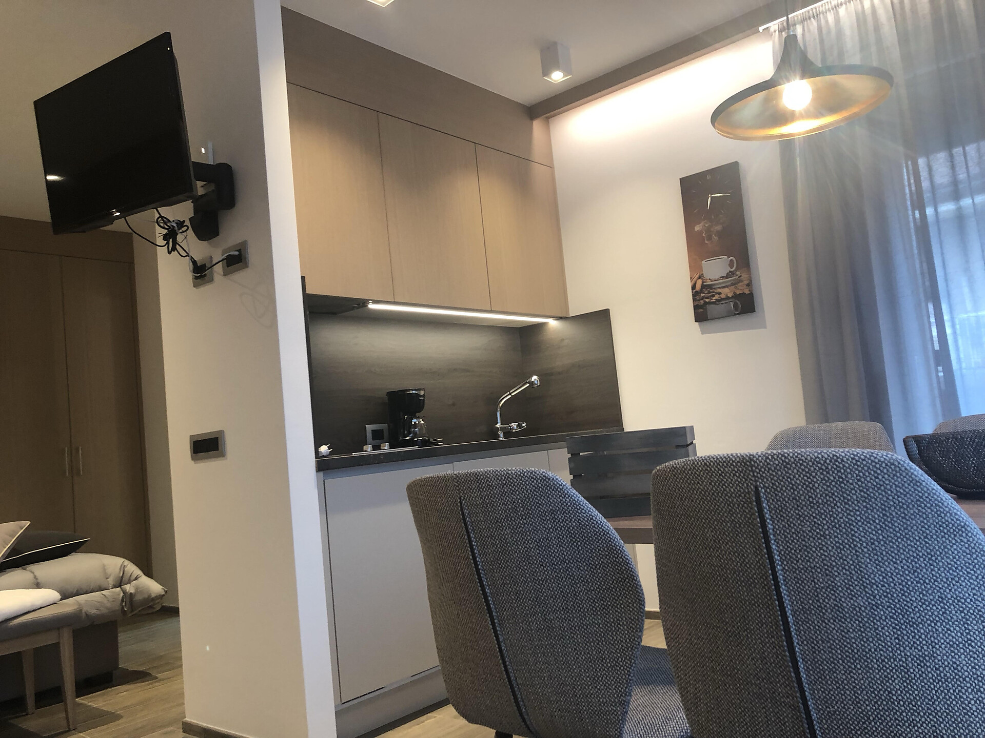 Bellissimo appartamento ampio e luminoso da 2/4 posti letto. Camera da letto con letto matrimoniale, zona giorno attrezzata con divano letto 2 posti , ampio guardaroba e zona pranzo con vista panoramica montagne.