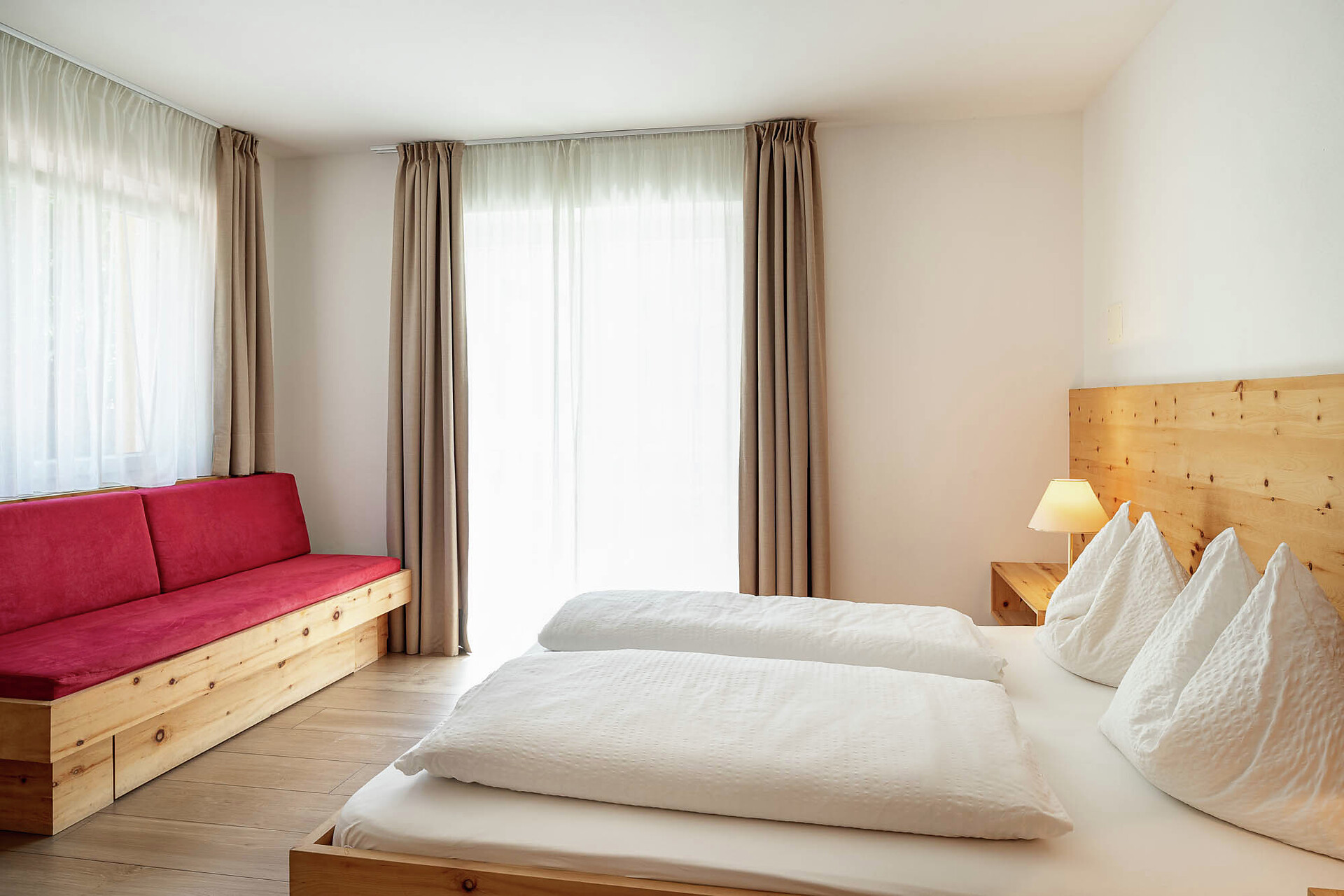 nuovo appartamento tipo UNO 40m² con camera da letto e soggiorno sepparato. Tutto arredato in legno nostrano. Entrando nell'appartamento si sente l'odore di legno. Soggiorno con divano letto, angolo da sedere caloroso e cucina arredata. nuovo bagno con doccia, toilet e bidet.