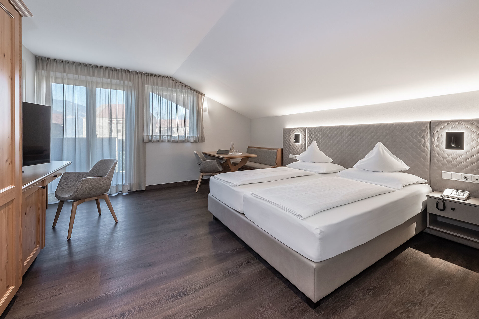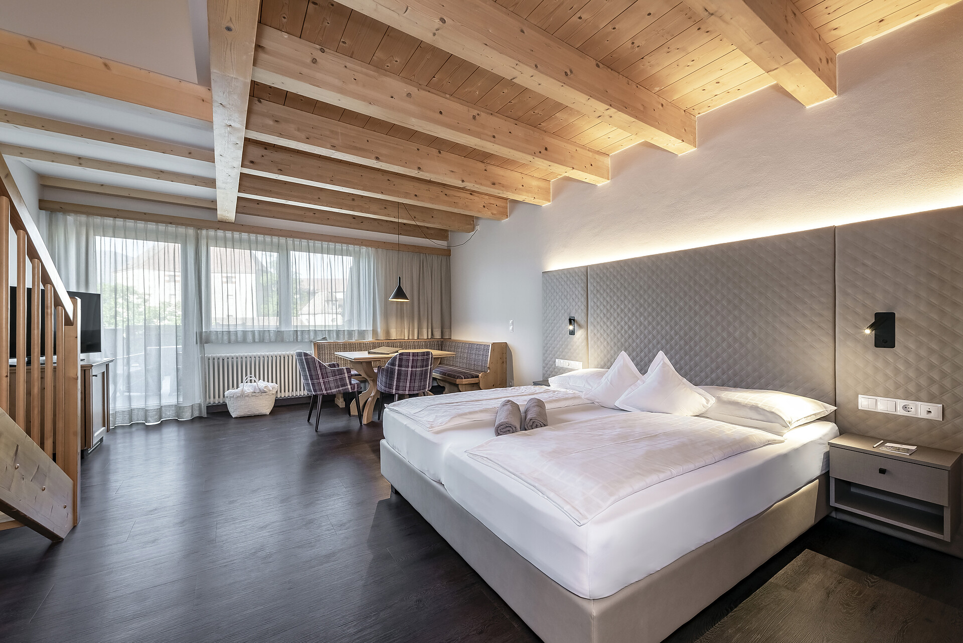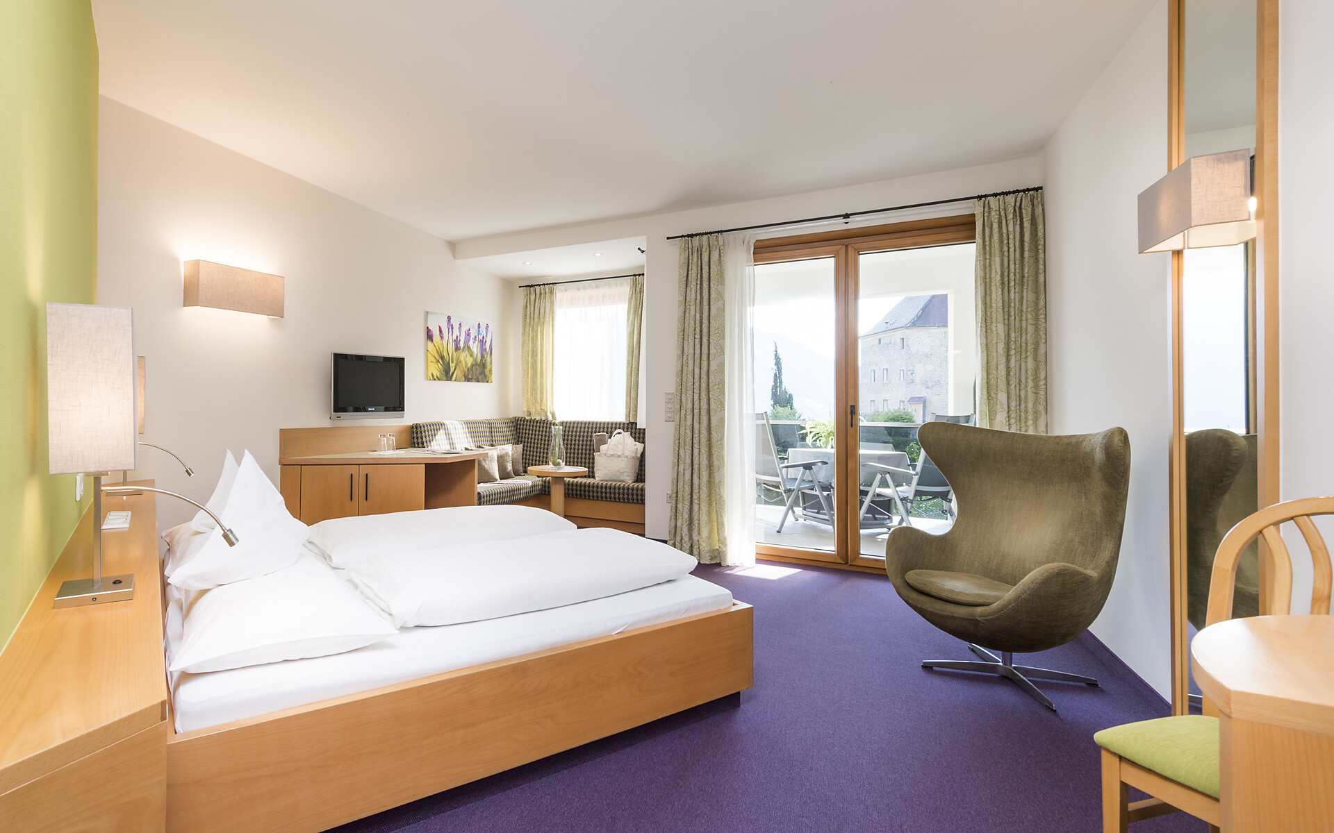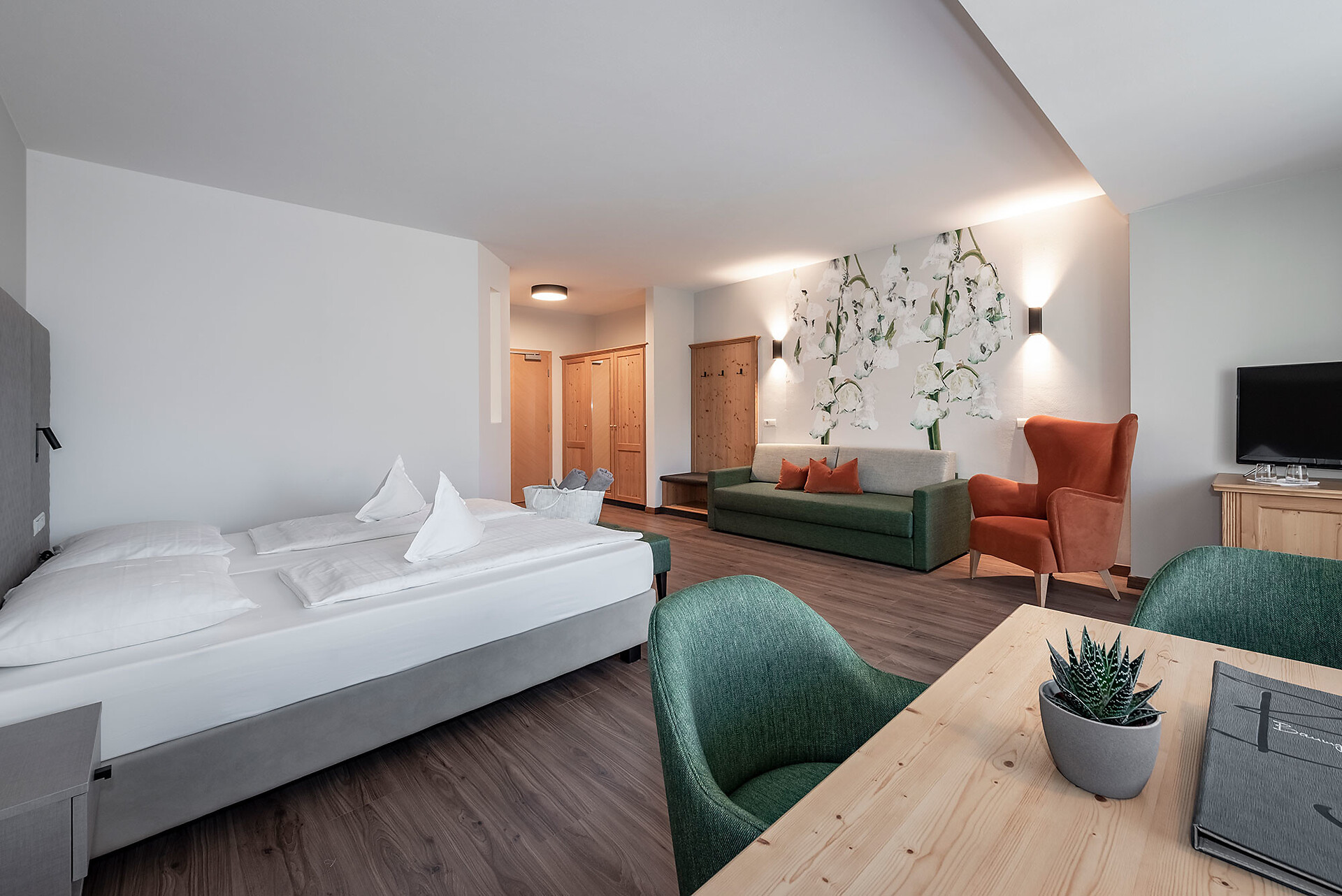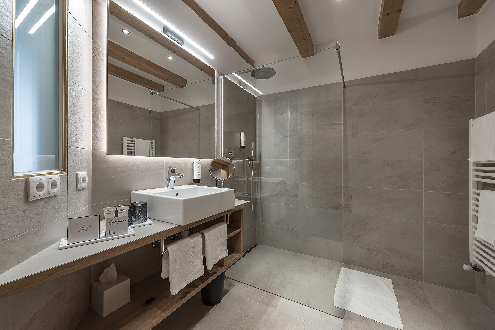 due camere da letto, una camera soggiorno, larghezza del letto nella seconda camera 1,40m, due bagni, doccia, WC, bidè, asciugacapelli, specchio cosmetico, teli per la sauna, accappatoio, climatizzato, infrarossi, pavimento di legno, minibar, macchina cafè Nespresso, 2 x TV satellitare flat, telefono, WiFi, cassetta di sicurezza, balcone a sud-ovest.