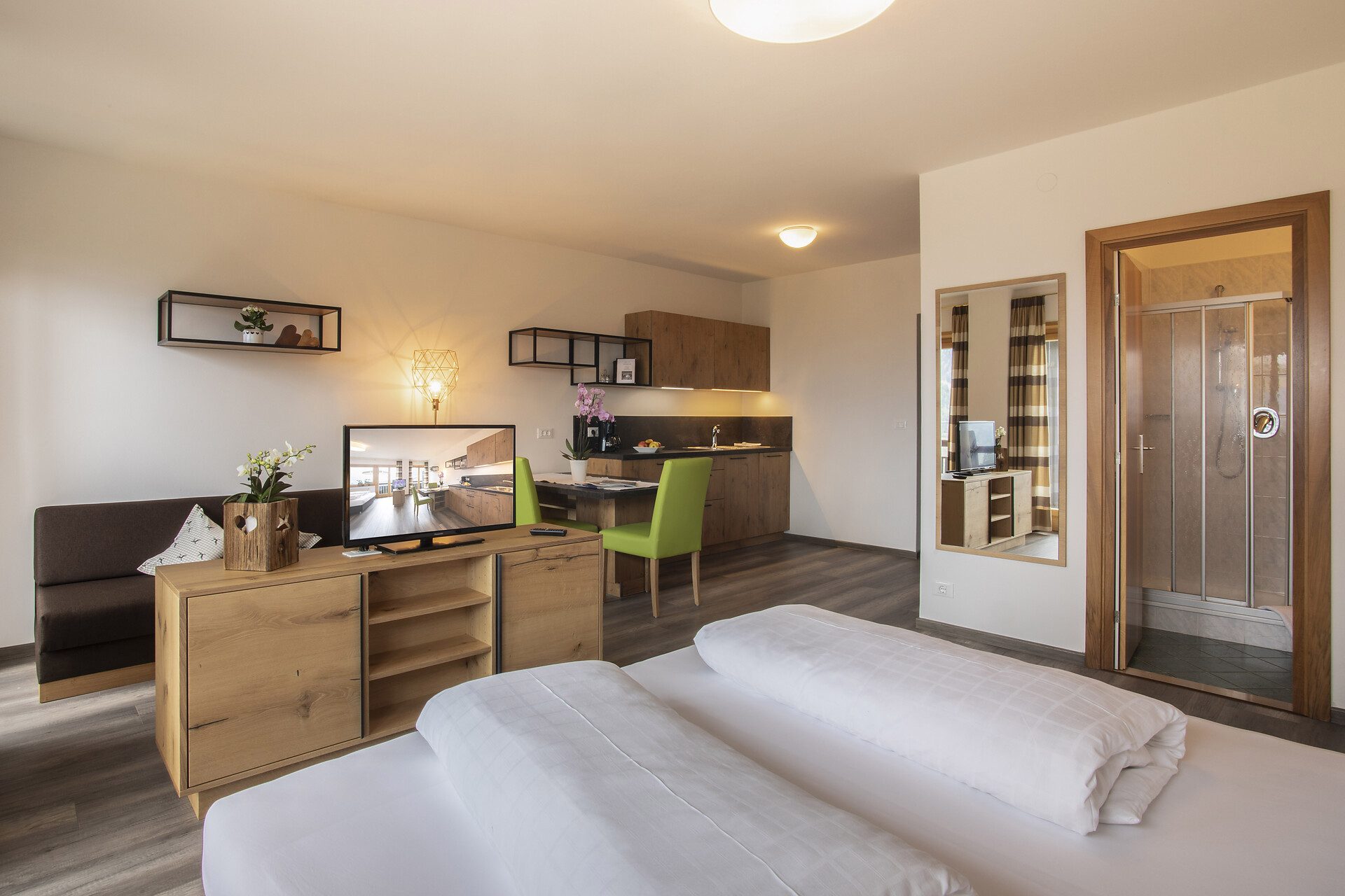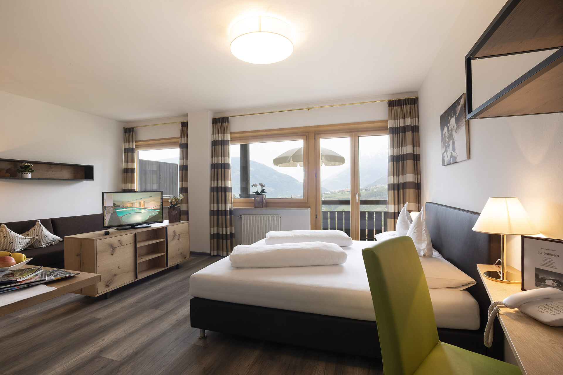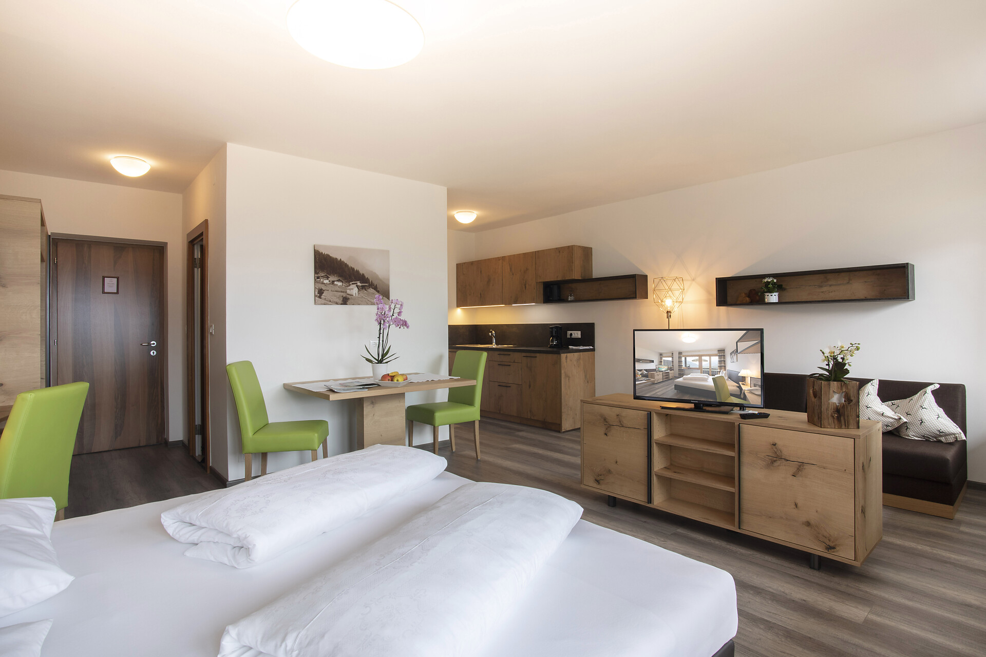 L'appartamento è arredato con un soggiorno con cucina e lavastoviglie, 1 o 2 camere con letto matrimoniale (su richiesta), balconi rivolti a sud-ovest e est, tv a schermo piatto, Wi-Fi, cassaforte, telefono, doccia/WC e asciugacapelli.