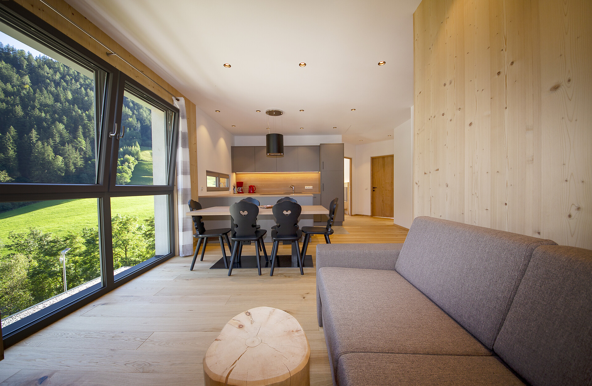 Il Bungalow Hoch (Hochwart) può ospitare fino a 6 persone ed è composto da un soggiorno con angolo cottura, un bagno, una camera con letto matrimoniale e una camera separata con letto a castello e 2 letti singoli. Il bungalow dispone di un terazzo con prato verde e vista sulle montagne.