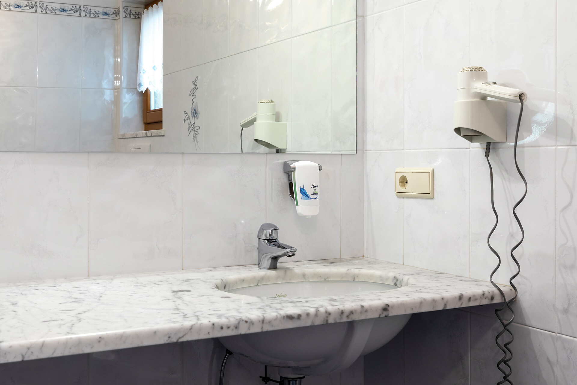 corridoio e bagno con doccia e vasca, fon, stoviglie e lavanderia