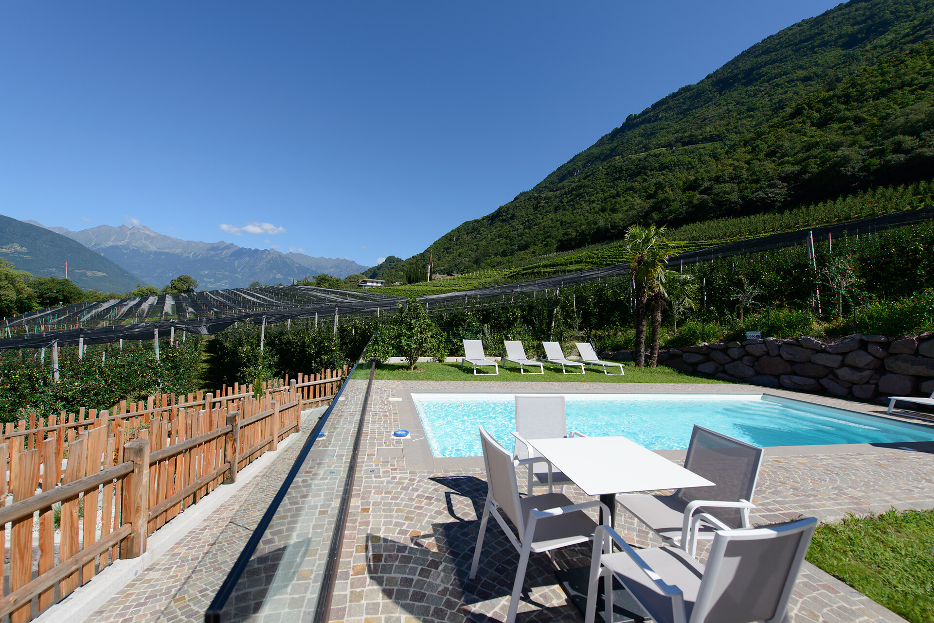 • Piscina con acqua salata e prato con sdraio