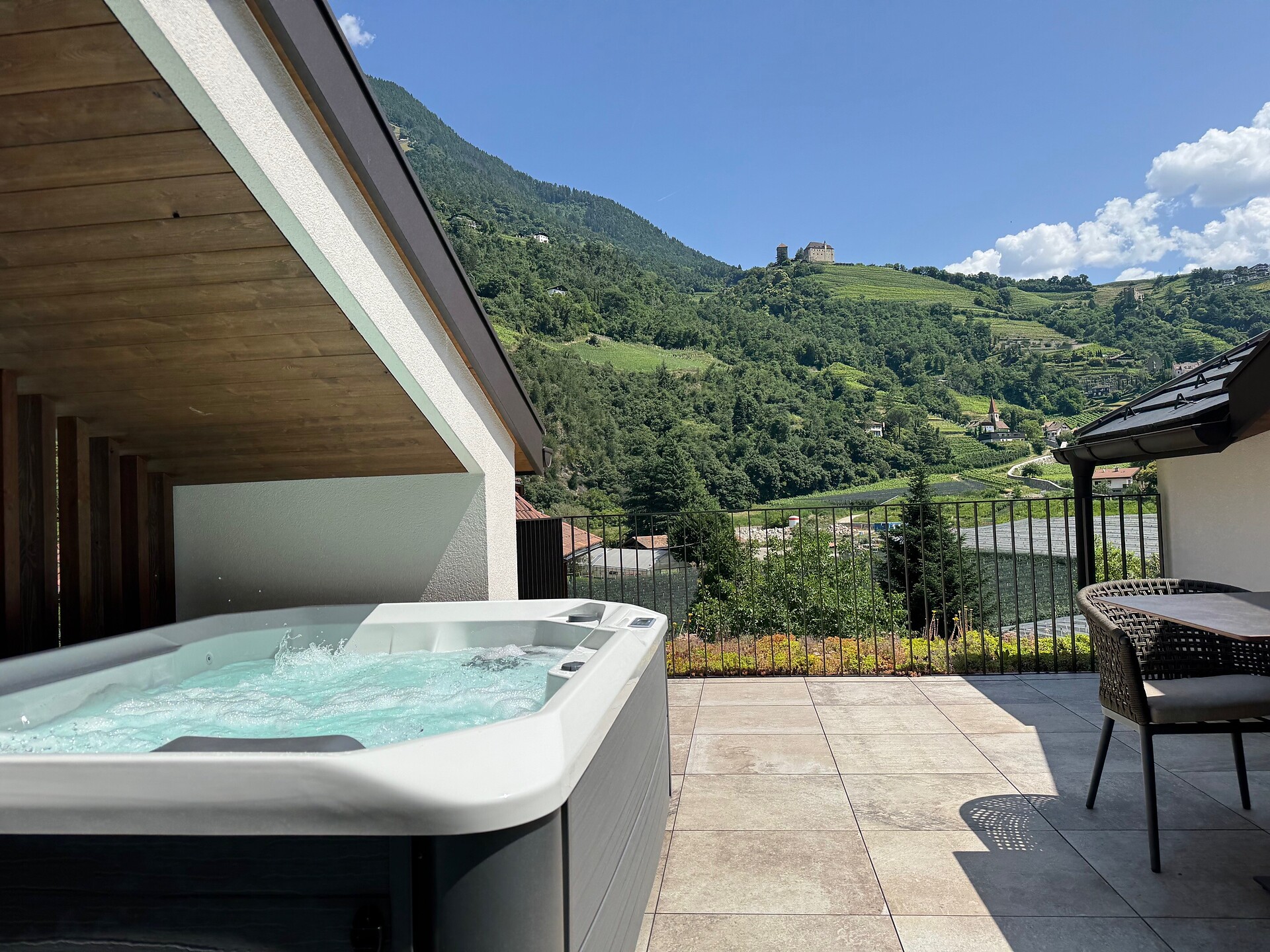 La parte migliore, tuttavia, rimane la fantastica vista panoramica: sulla terrazza esposta a sud, infatti, il Burgraviato con la città di Merano