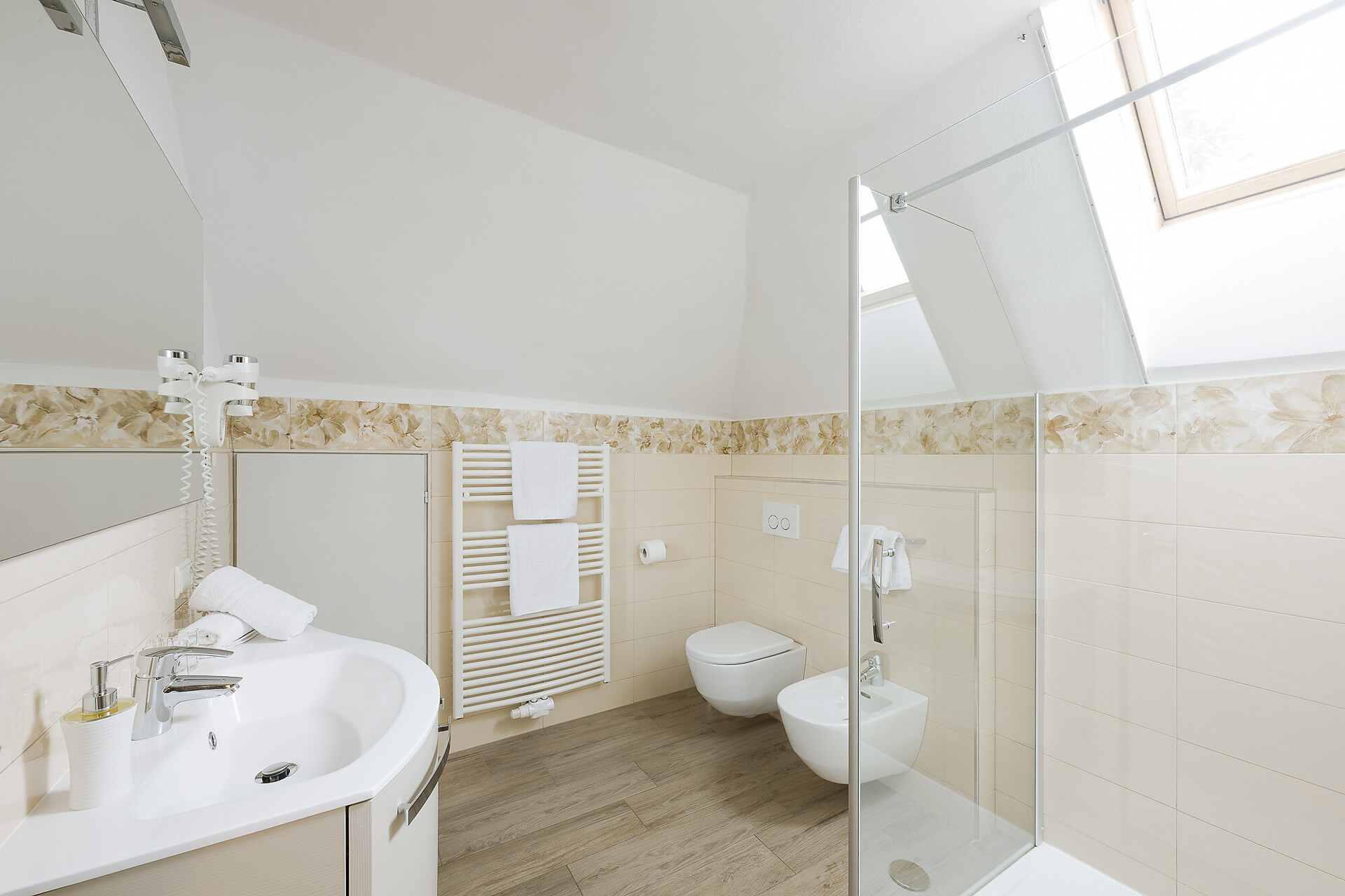 Letto matrimoniale, Divano letto, Aria condizionata, Biancheria da letto disponibile, Cucina separata, Lavastoviglie, Piano cottura elettrico, Stoviglie, Piano cottura, Scaldaacqua, Doccia / bagno, Bidet, Fon, Asciugamani, TV, TV satellitare/via cavo, WLAN, Pulizia finale inclusa, Edificio principale, Vista panoramica