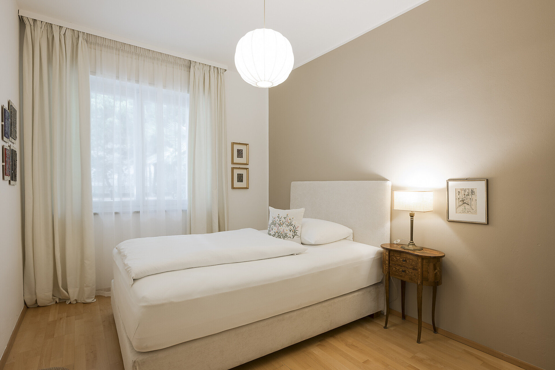 Appartamento composta da camera matrimoniale, soggiorno con divano letto (su richiesta), zona pranzo, cucina completamente attrezzata, frigorifero, lavastoviglie, forno o microonde, bollitore e tostapane, doccia, WC, bidet, TV satellitare in soggiorno e camera da letto, aria condizionata.