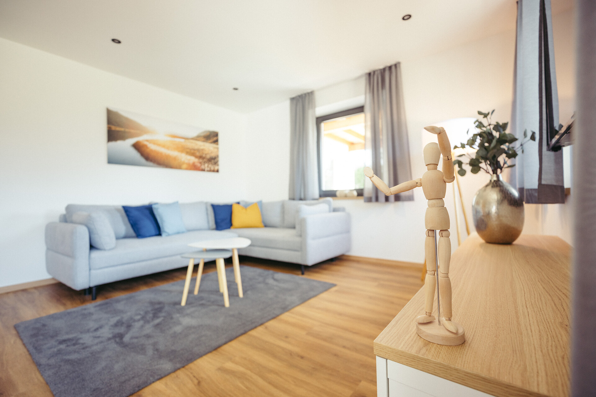 Appartamento nuovo con vista da sogno, in posizione tranquilla ma centrale. 95m² suddivisi in ampio soggiorno con cucina, 2 camere da letto separate, divano letto nel soggiorno, bagno e WC diurno separato. Terrazza e giardino. Posto auto di proprietà.