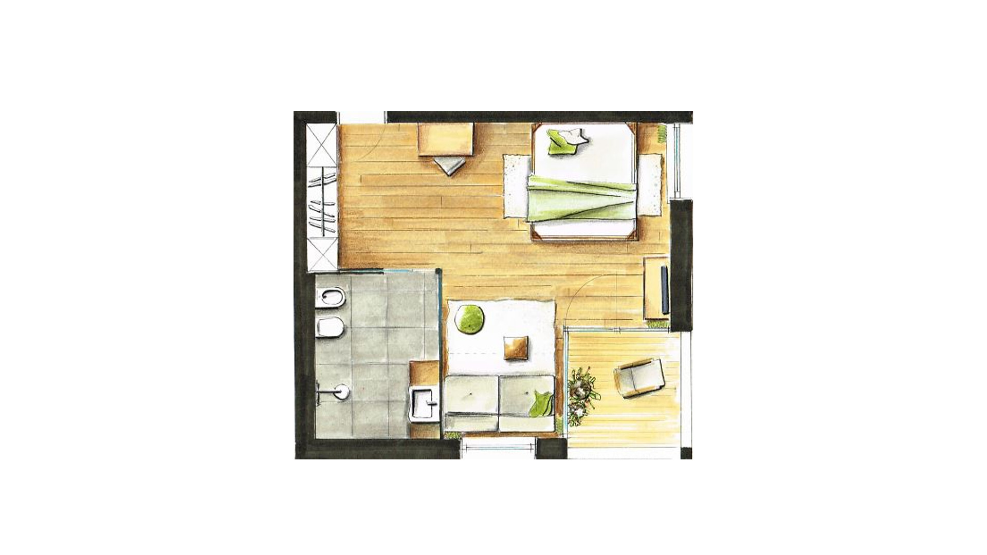 Qui potrete mettervi comodi, come più vi piace. Perché la nostra camera "Gala Plus" offre molto spazio. In coppia o in famiglia, questa elegante camera di design è davvero perfetta per tutti. Un luminoso soggiorno, con un mix di rustico larice naturale e arredi moderni, una porta scorrevole in legno con cui è possibile separare la camera da letto con il suo letto matrimoniale. Grazie all'ampio divano con solidi materassi si può così ottenere una seconda camera da letto. Meravigliosa, oltretutto. E con vista sulla terrazza panoramica di 17m ².