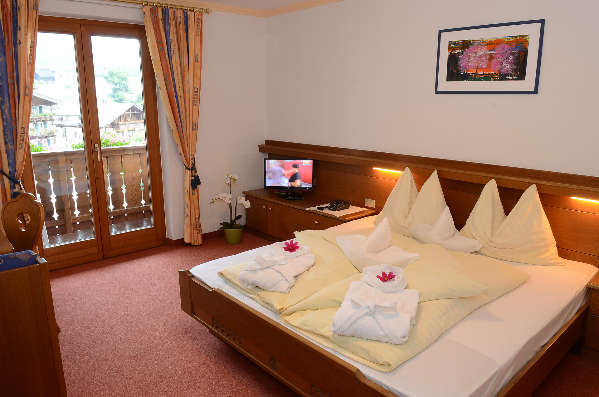 Ogni camera doppia é dotata di doccia, wc, balcone, cassaforte, TV, fono, WLAN.