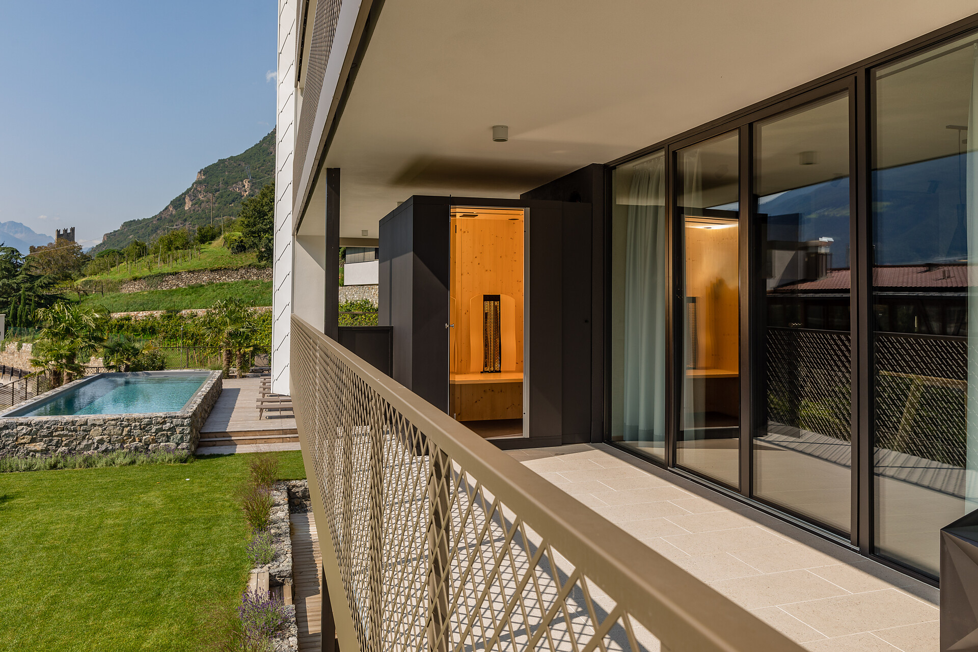 Potrà rinfrescarsi nella piscina all’aperto nel giardino mediterraneo, mentre un divertente parco giochi attende i nostri ospiti più piccoli.