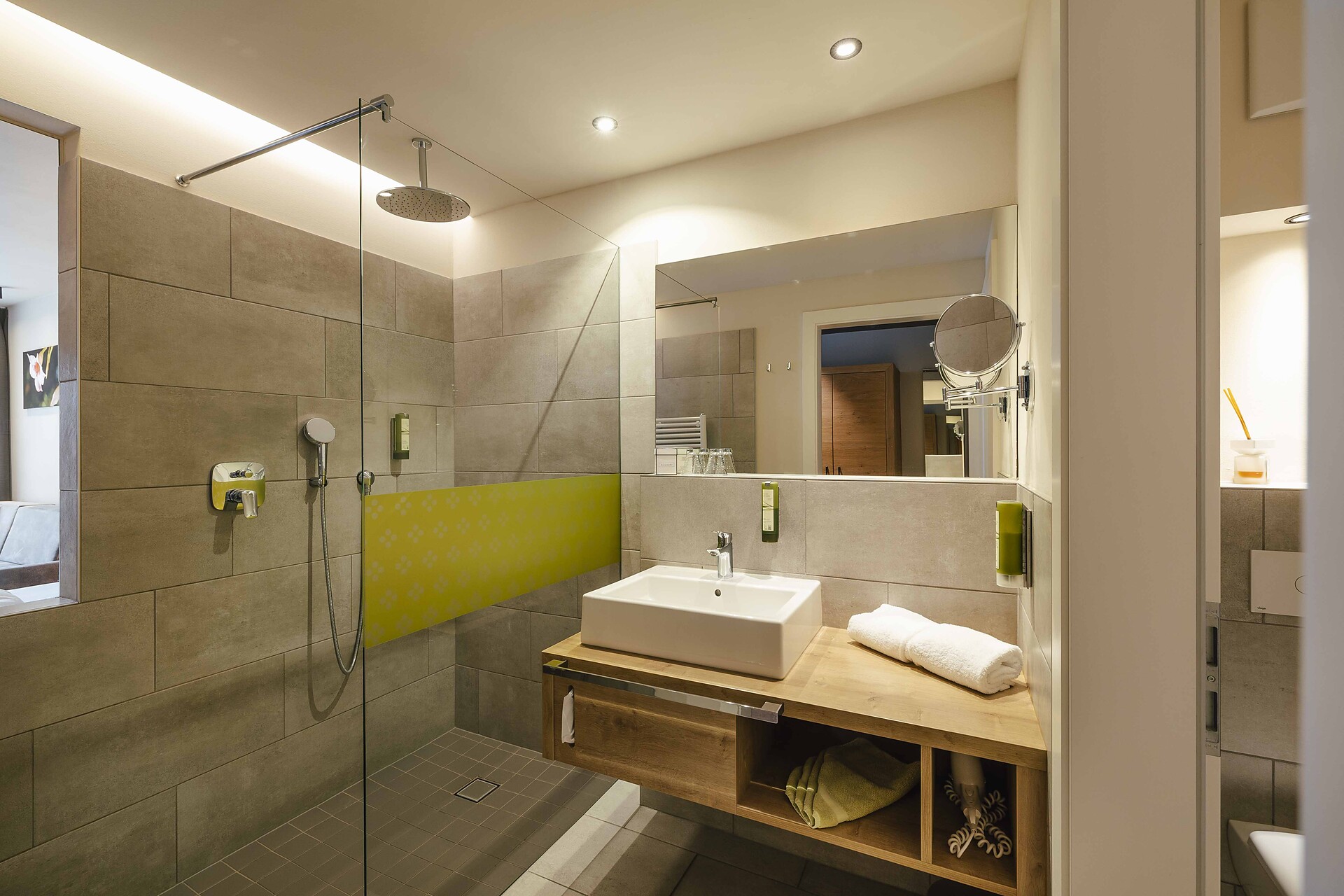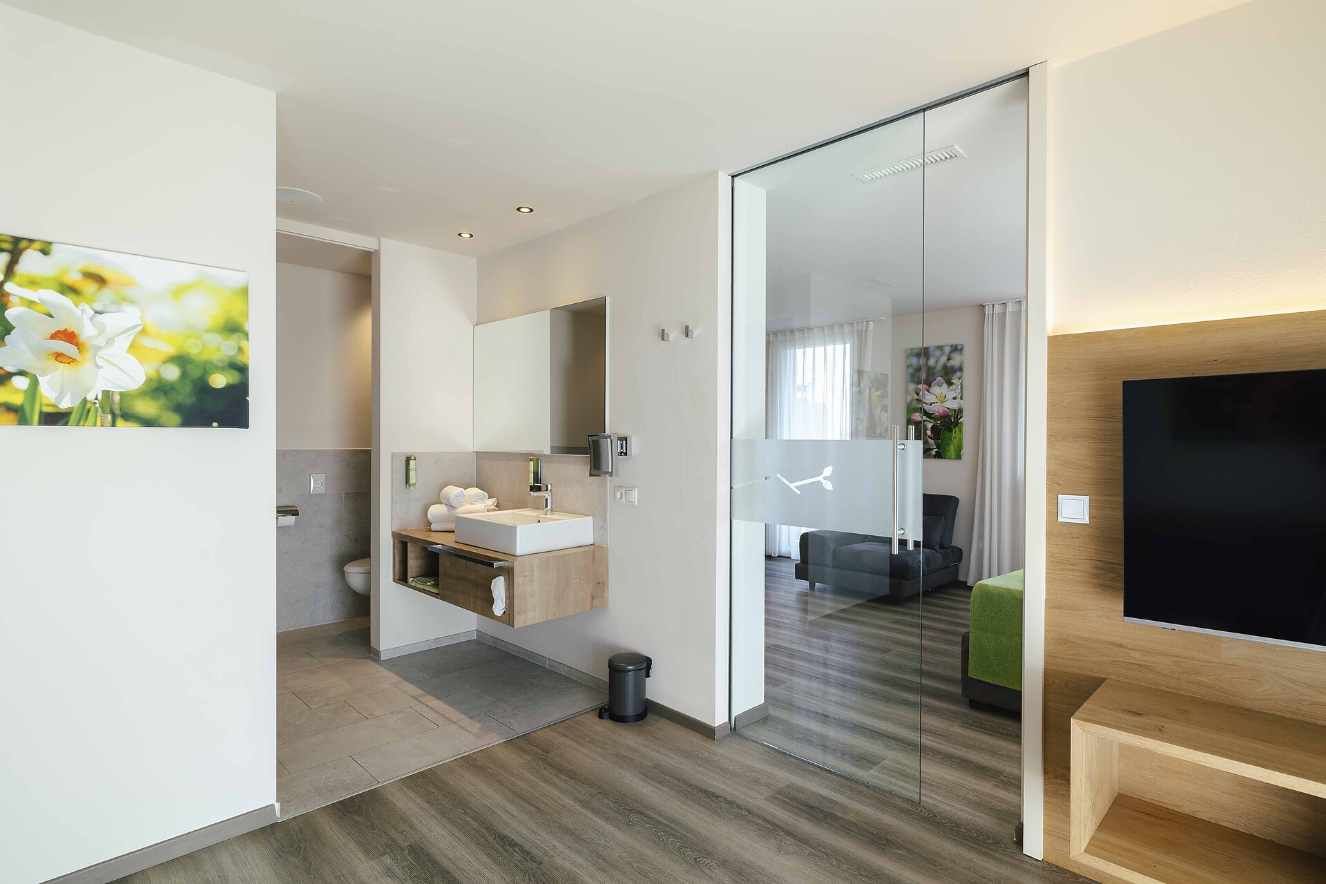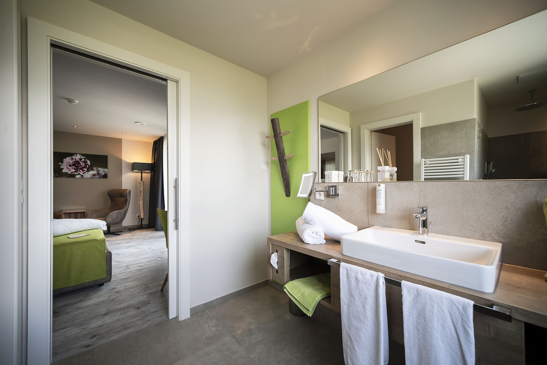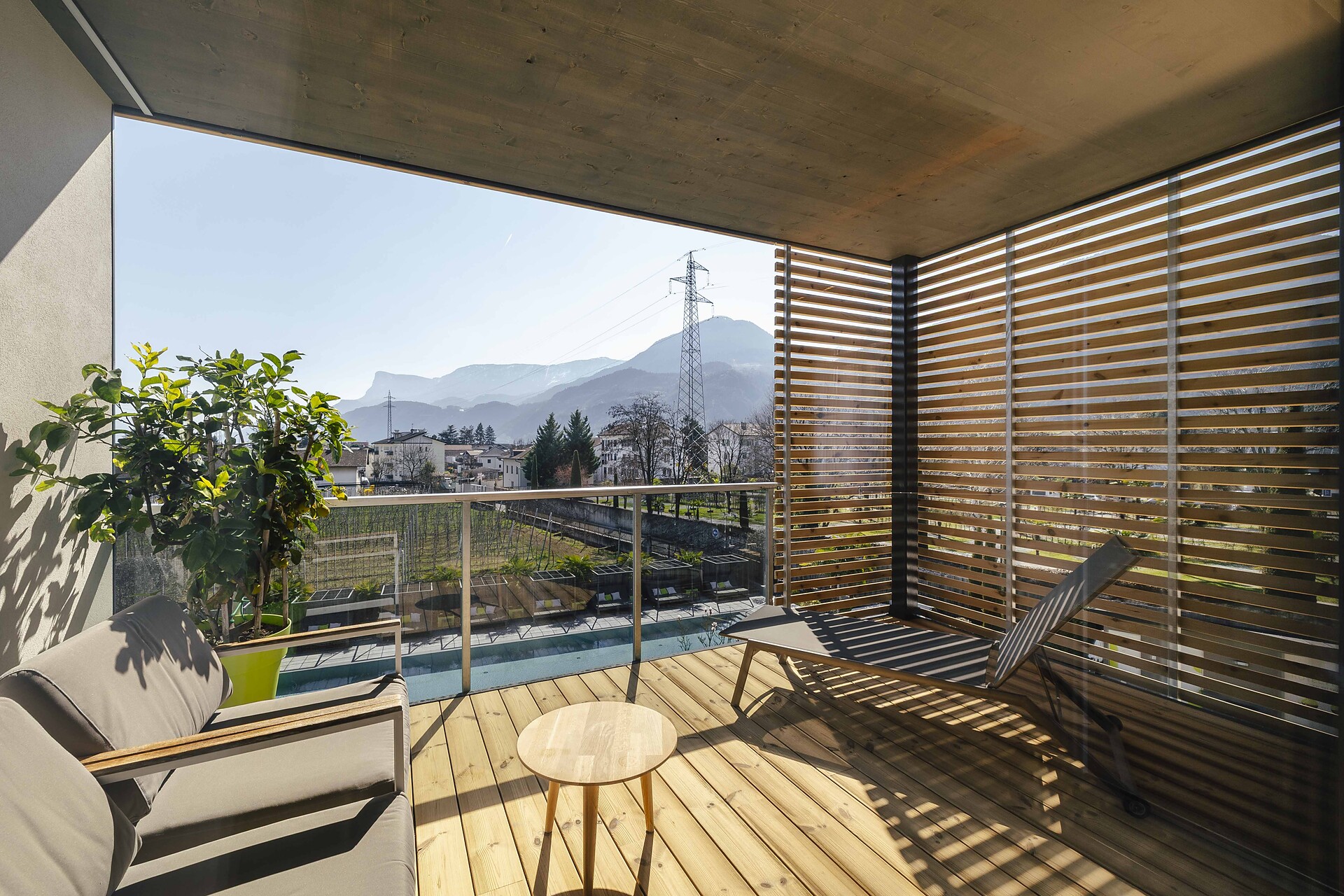 Luminosa Suite con camera da letto e zona giorno separata. Il punto culminante è la vasca idromassaggio Hotspring sul privato balcone panoramico rivolto a sud. Bagno elegante, dotato di doccia a pioggia, asciugacapelli e bidet, frigorifero, macchina per espresso, set da tè, WiFi, 2 TV, cassaforte, aria condizionata.