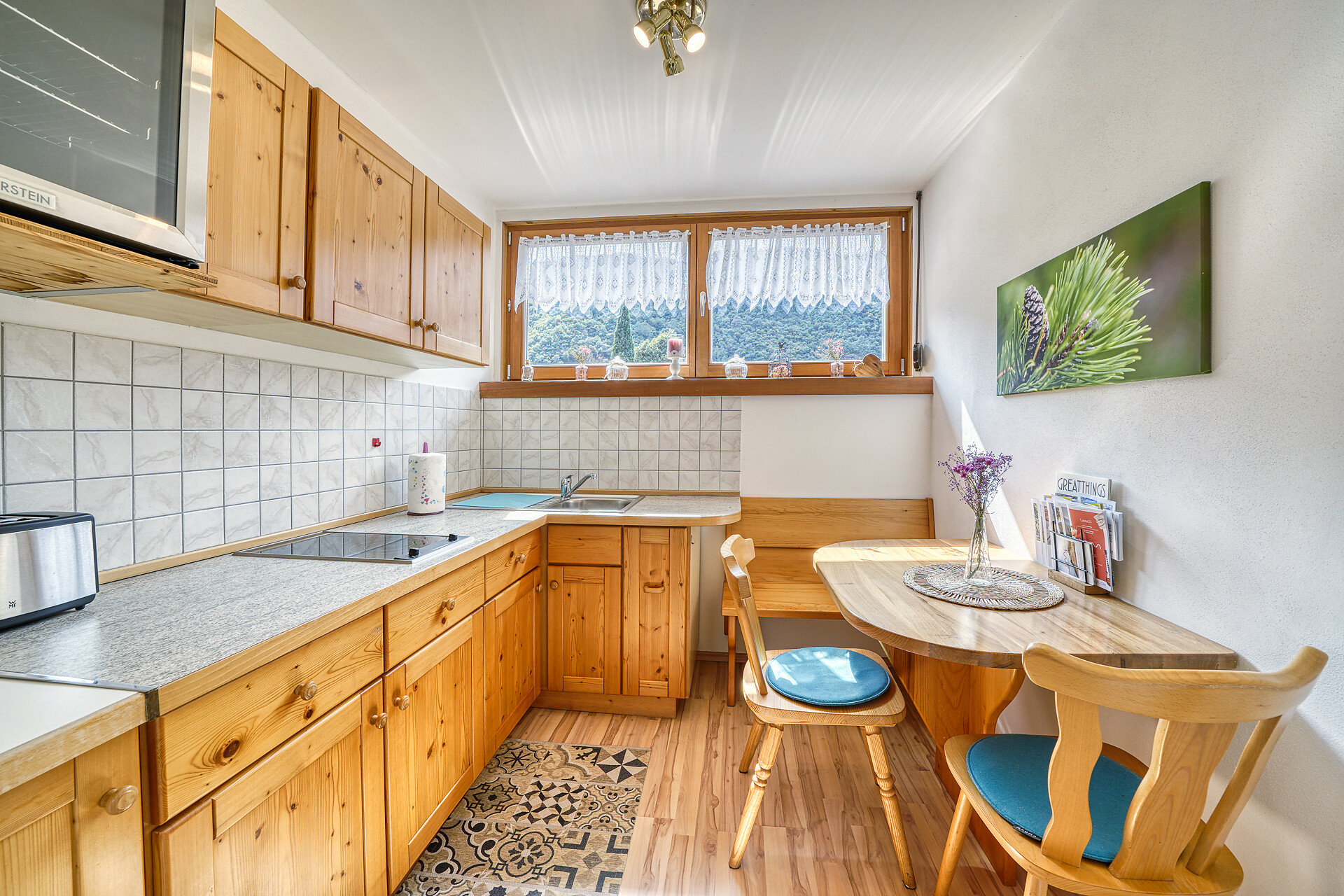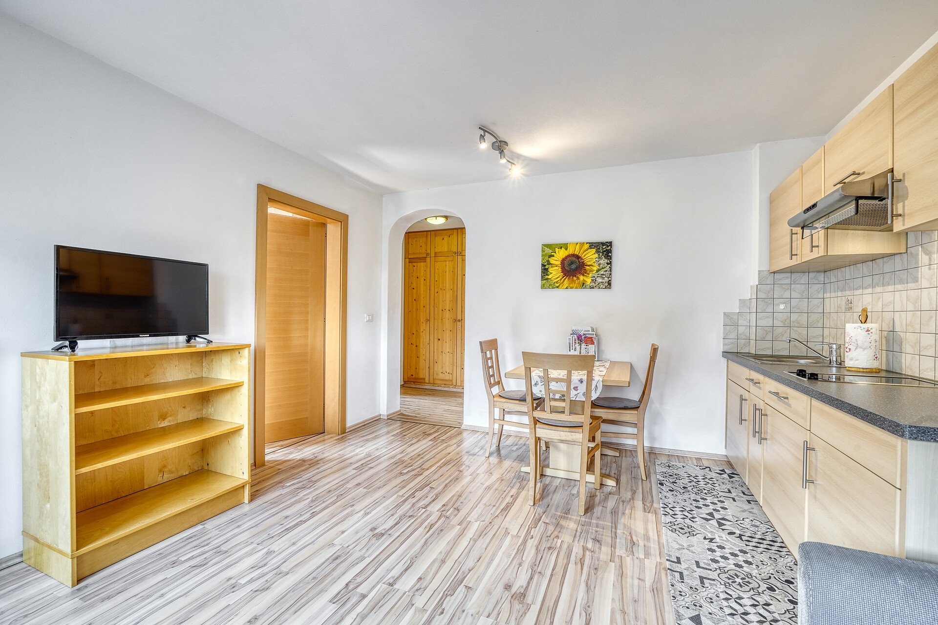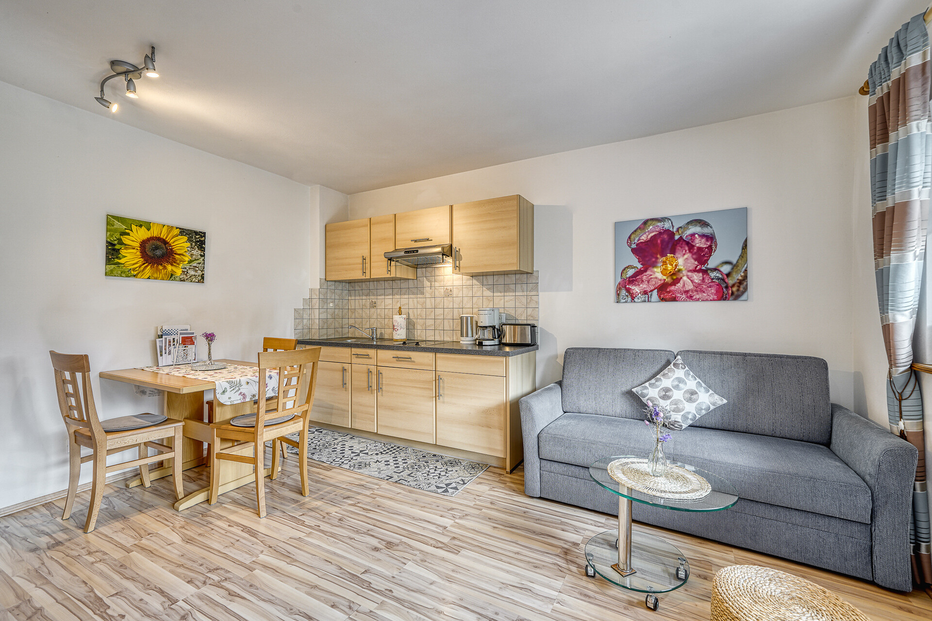 Letto matrimoniale, Divano letto matrimoniale, Balcone, Biancheria da letto disponibile, Cassaforte, Appartamento non fumatori, Cucina separata, Macchina da caffè, Forno a microonde, Stoviglie, Piano cottura, Scaldaacqua, Doccia / bagno, Fon, TV, TV satellitare/via cavo, WLAN, Pulizia finale inclusa, Edificio principale, Lato sud