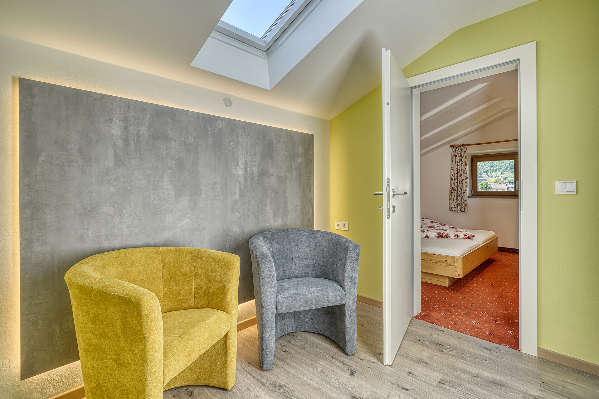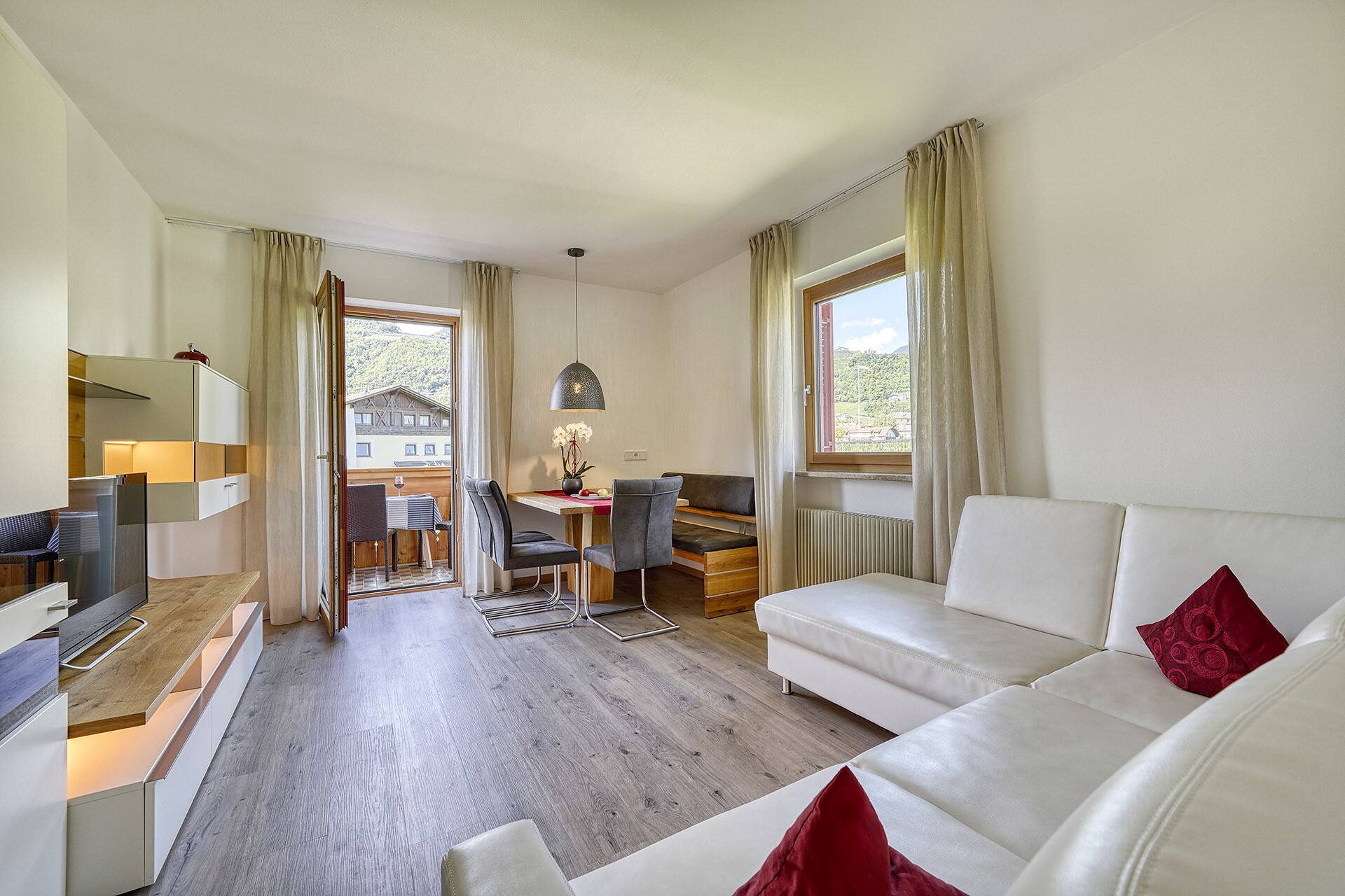 L ‘ appartamento Golden TIPO A DELUXE (, per 2- 5 pers.) con 2 camere da letto, uno con letto matrimoniale, grande soggiorno con divano letto estraibile 170x200 cm posto letto, angolo soggiorno, guardaroba, cassaforte a muro, cucinino con 4 piastre elettriche, frigorifero, microonde, lavabo, macchina del caffè, con doccia, WC, asciugacapelli e due balconi spaziosi con tavoli e sedie, tv color satellitari, radio,biancheria completa, aschiugamani.