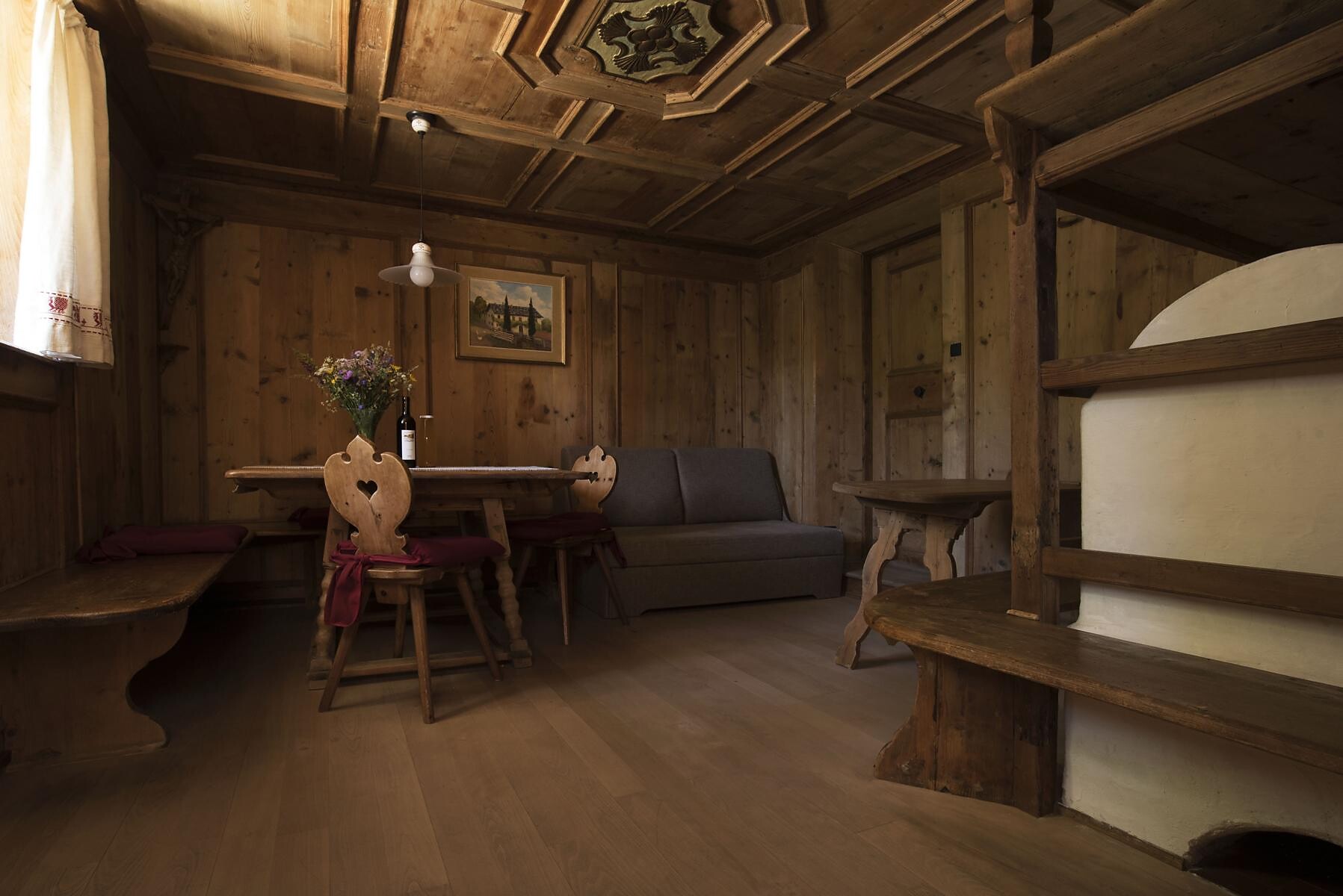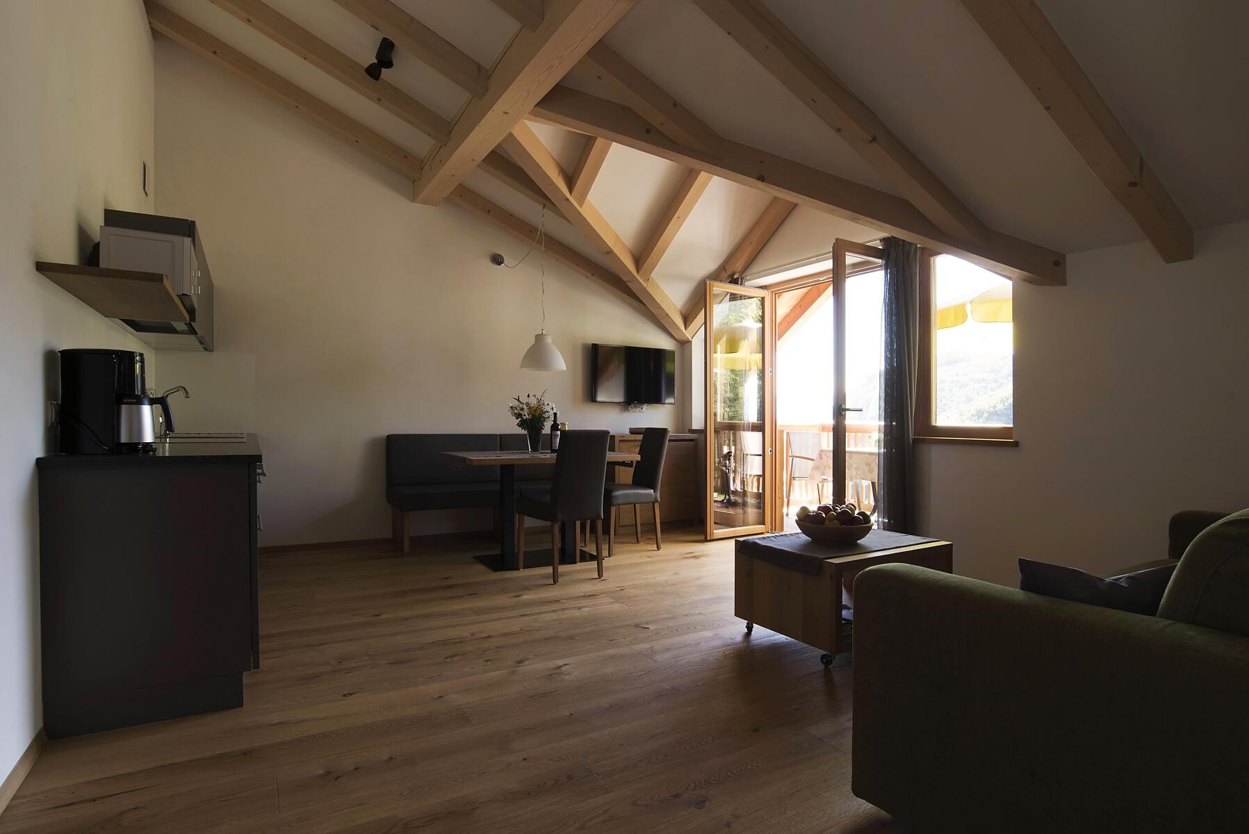 Letto matrimoniale, Divano letto, Terrazza, Giardino, Stufa in maiolica/caminetto, Soggiorno separato, Biancheria da letto disponibile, Cucina separata, Macchina da caffè, Lavastoviglie, Piano cottura elettrico, Stoviglie, Scaldaacqua, Doccia / bagno, WC separato, Asciugamani, TV, TV satellitare/via cavo, WLAN, Collegamento internet , Pulizia su richiesta, Pulizia finale inclusa, Edificio principale, Vista panoramica, Lato sud