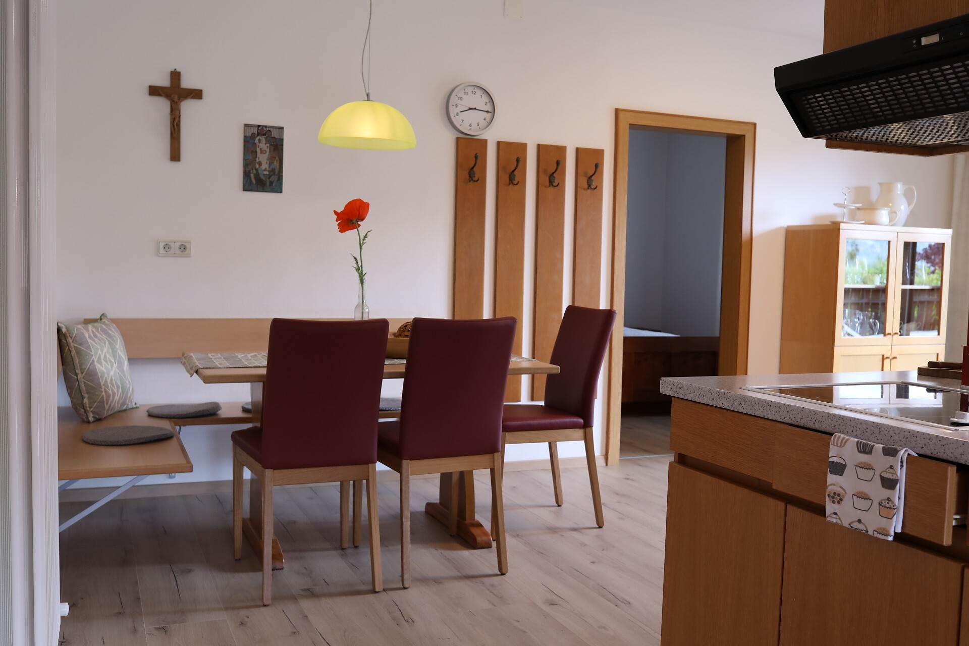 L'appartamento è accessibile senza scale perché il nostro maso è costruito su un pendio. L'appartamento ha due camere da letto, due docce/WC, un soggiorno molto ampio con angolo cottura ben attrezzato e un comodo divano letto, due balconi con una bellissima vista, sole del mattino. In una camera da letto ci sono mobili antichi in legno massiccio.