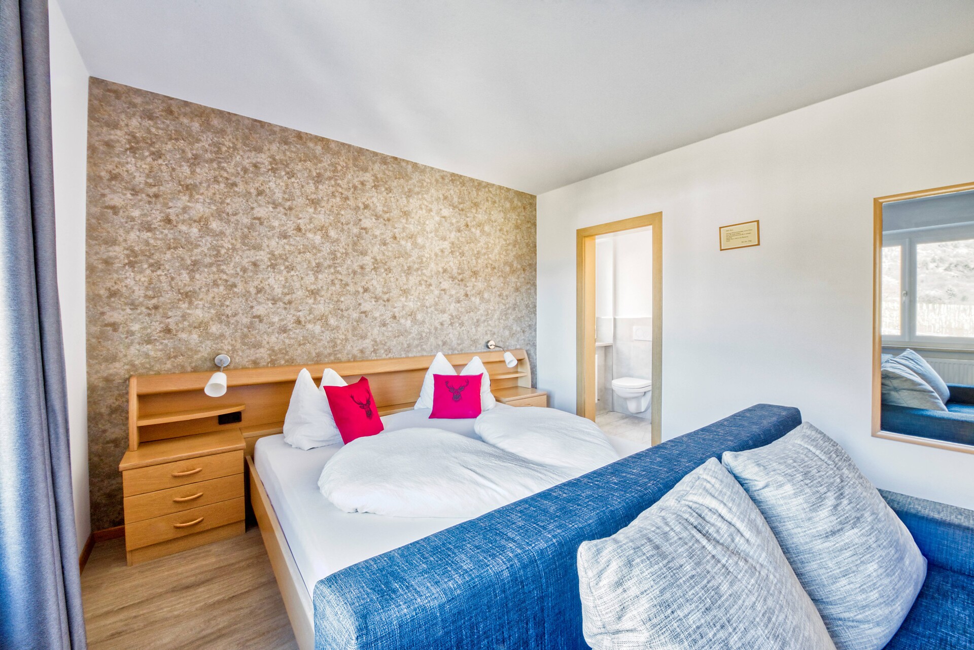 Confortevole camera doppia con grande balcone esposto a sud-ovest e bagno spazioso.