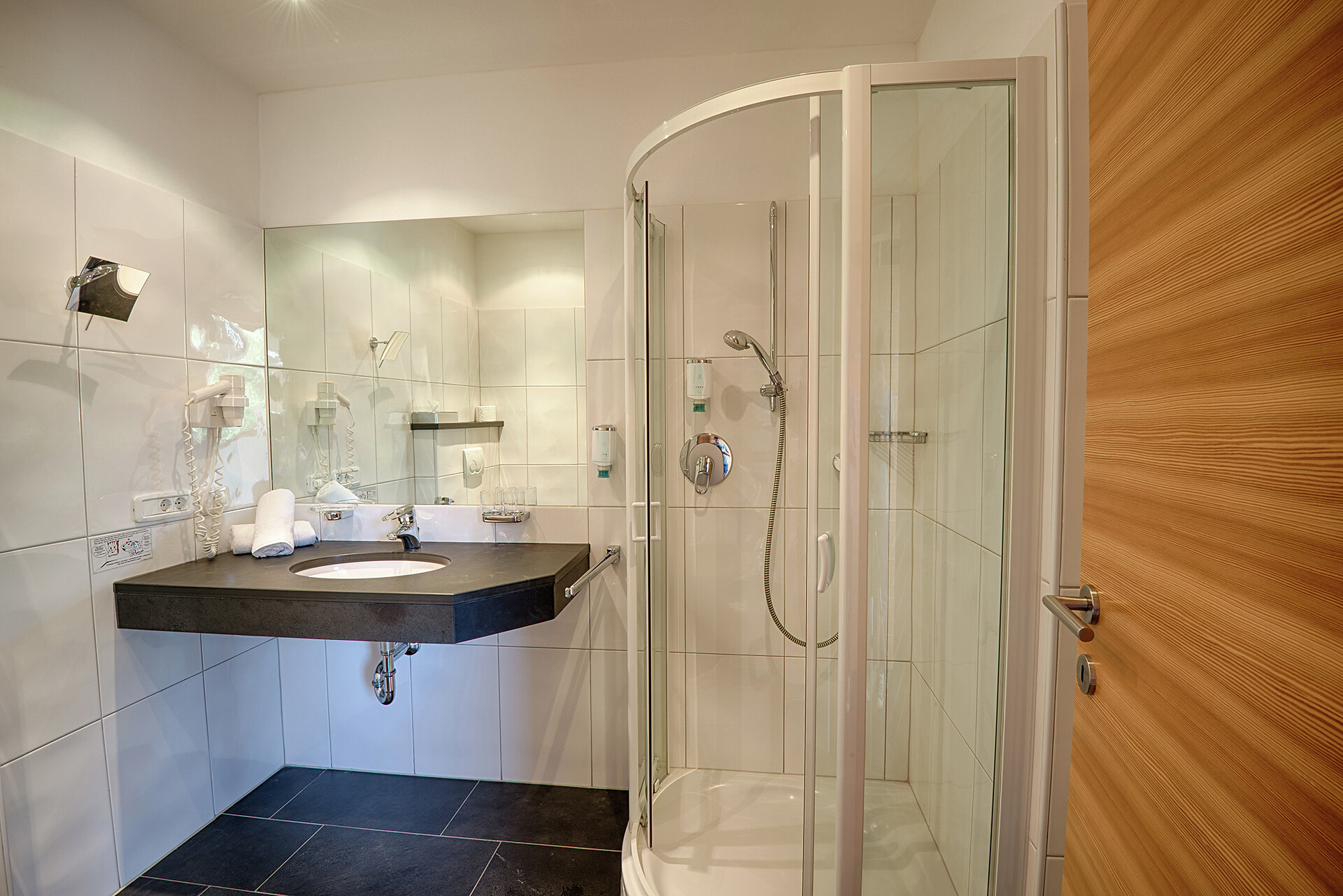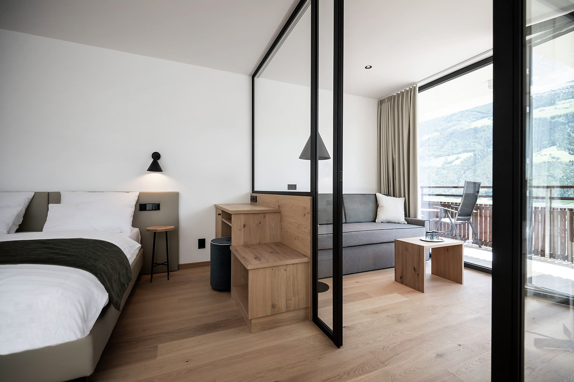 2 piano, pavimento di legno, balcone a sud, doccia, WC/ bidet separato, WLAN, Flatscreen con SatTV, radio, telefono, cassaforte, frigo, zaino, asciugacapelli, accapatoio, teli e slippers.