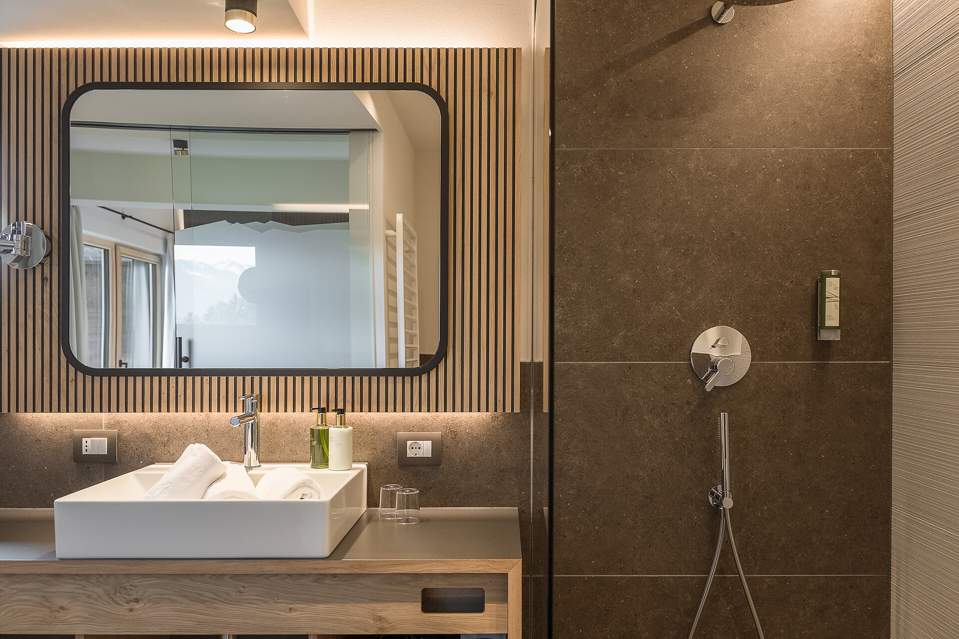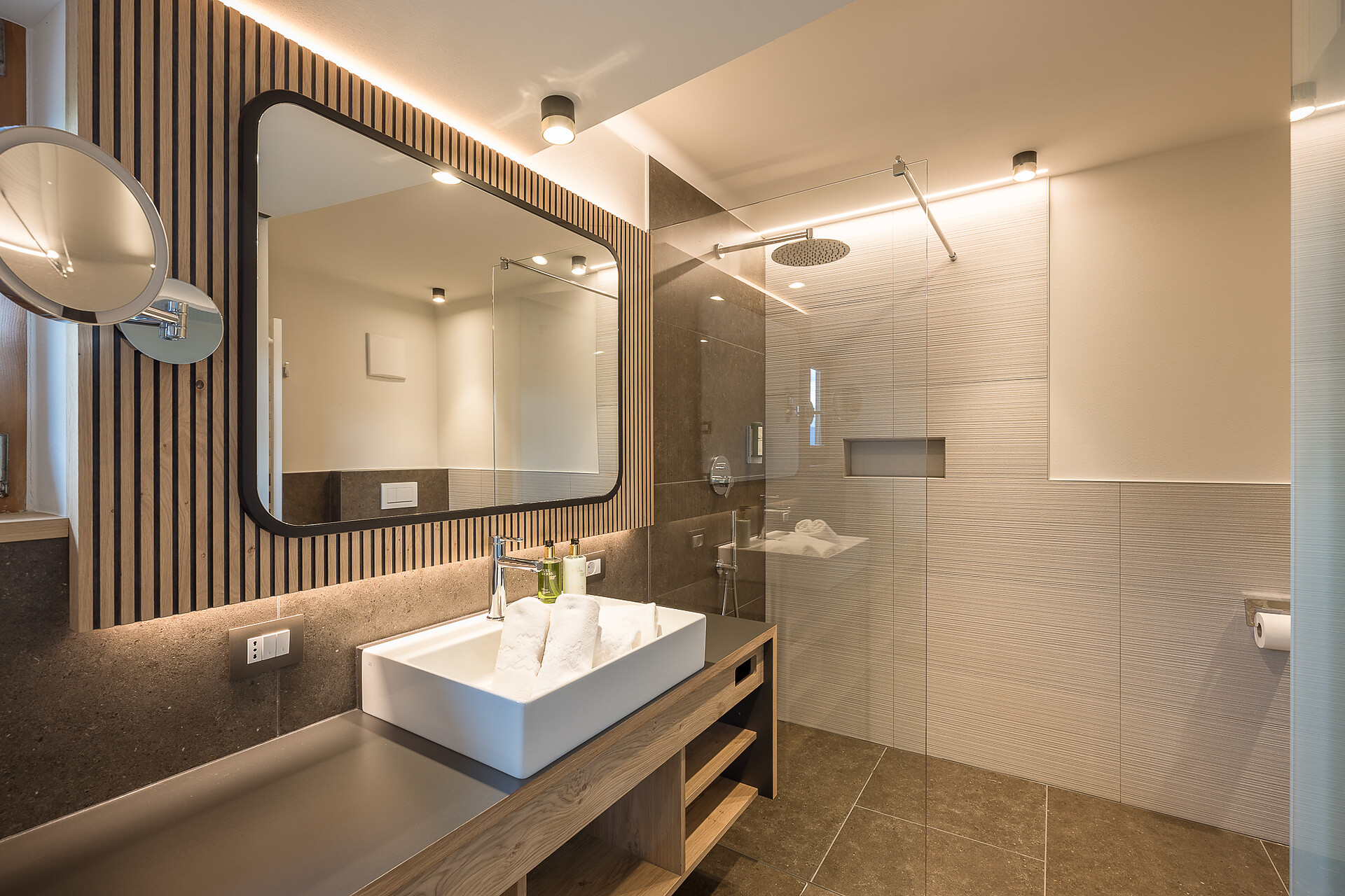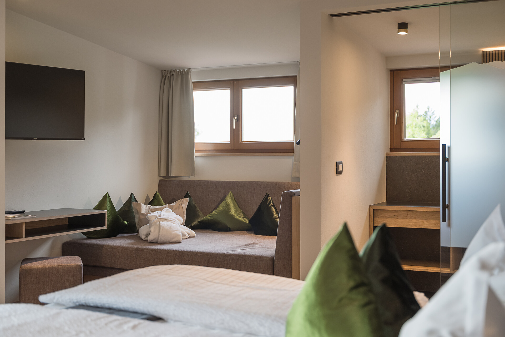 NOVITÀ: Per un benessere ancora maggiore vi aspetta la nostra nuova area wellness con infinity-pool interno-esterno, grande prato-solarium, sauna finlandese, bagno turco aromatico, fontana di ghiaccio e docce emozionali, oltre a comode chaise-longue nell’elegante zona relax. Nella zona vitale troverete piccoli spuntini rigeneranti.