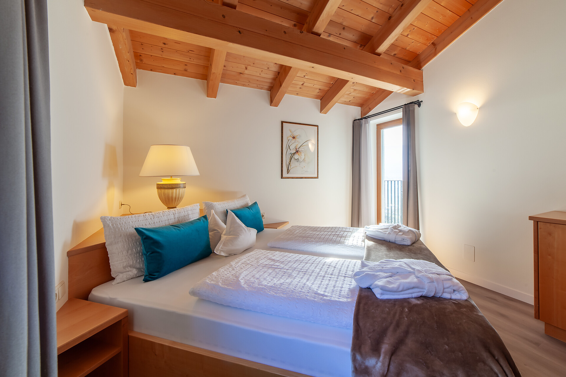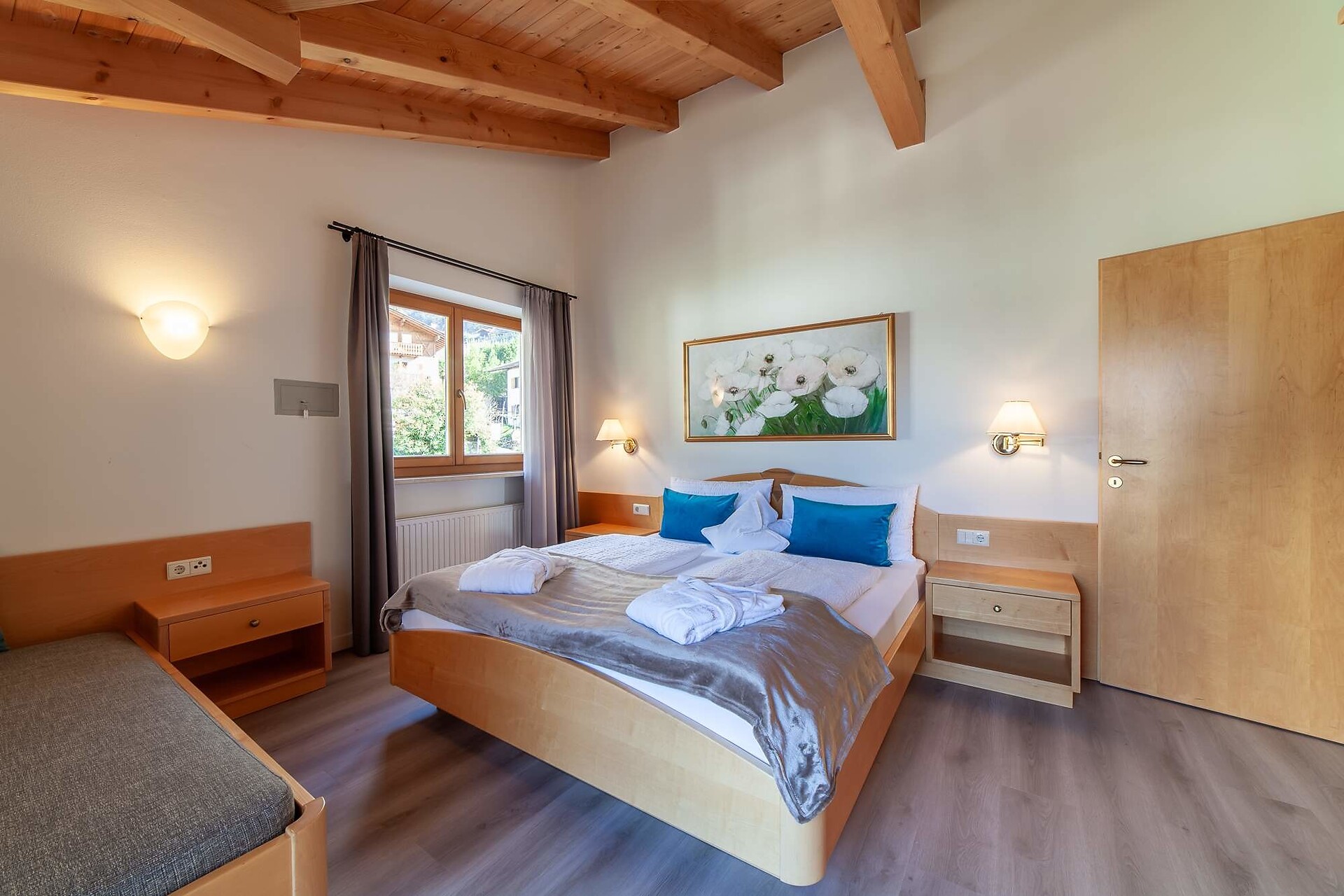 Letto matrimoniale, Letto aggiuntivo, Balcone, Biancheria da letto disponibile, Cassaforte, Cucina abitabile, Macchina da caffè, Piano cottura elettrico, Stoviglie, Doccia / bagno, Asciugamani, TV, TV satellitare/via cavo, Edificio principale