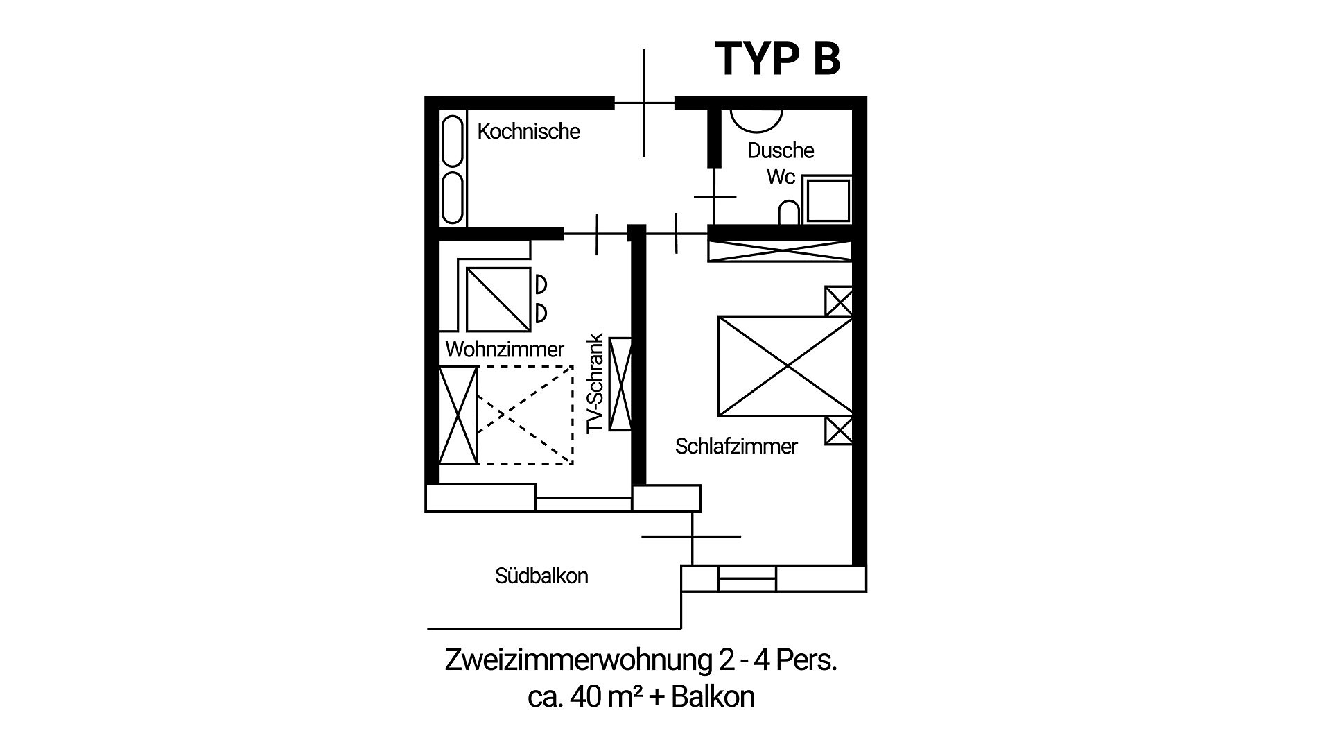 (per 1 - 3 persona/e | 40 m² | 3 appartamenti di questo tipo )
